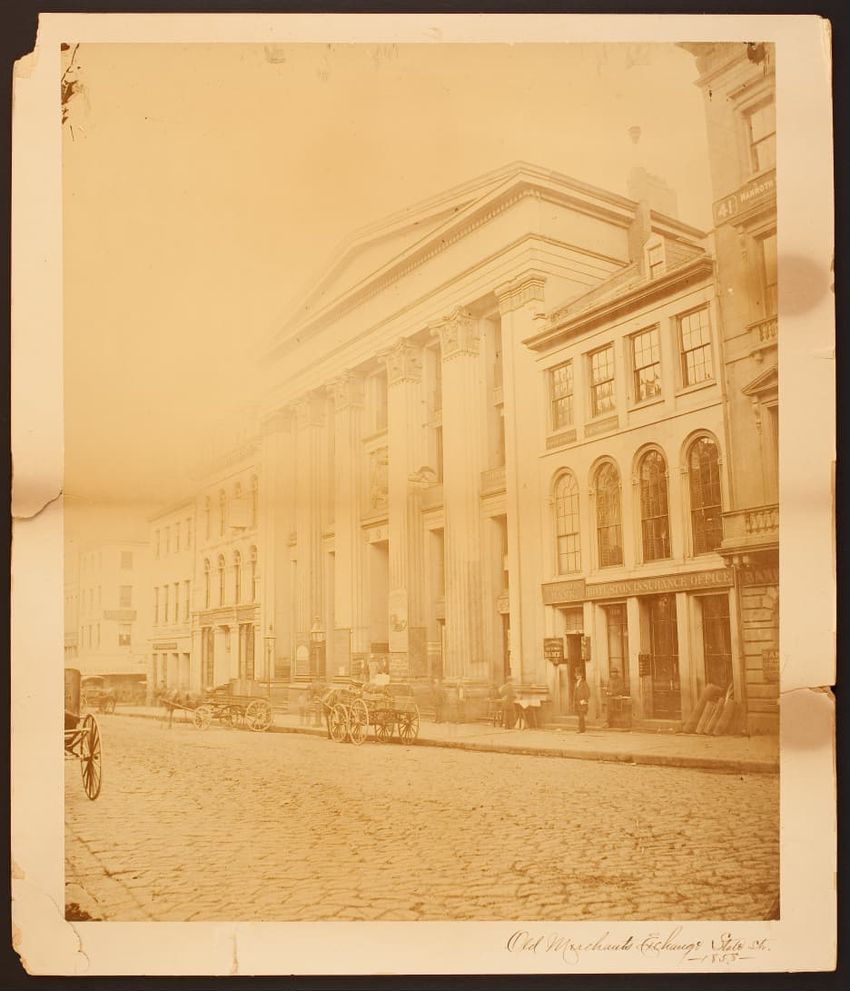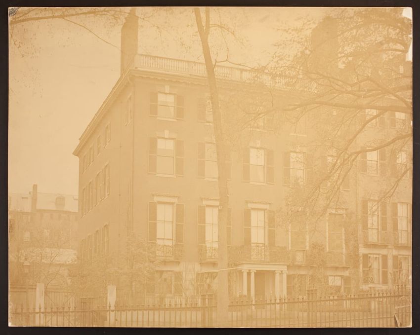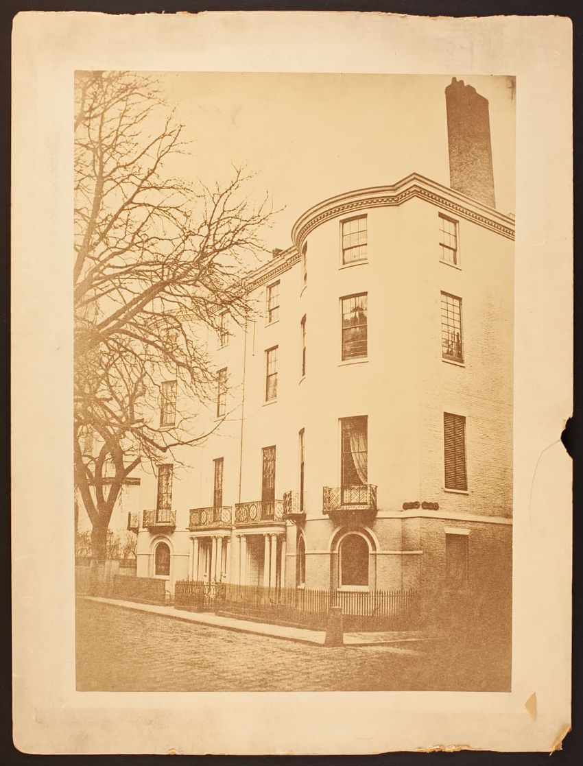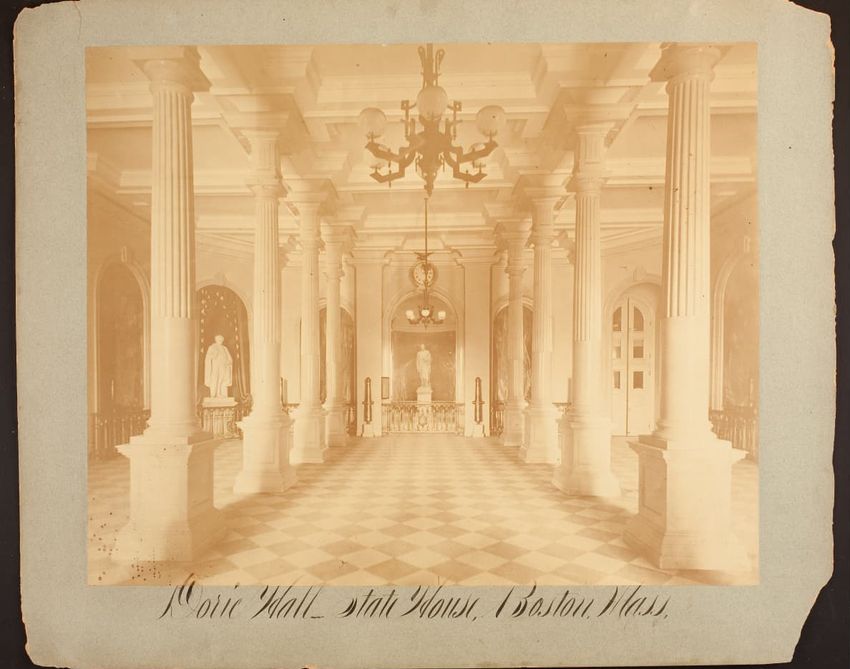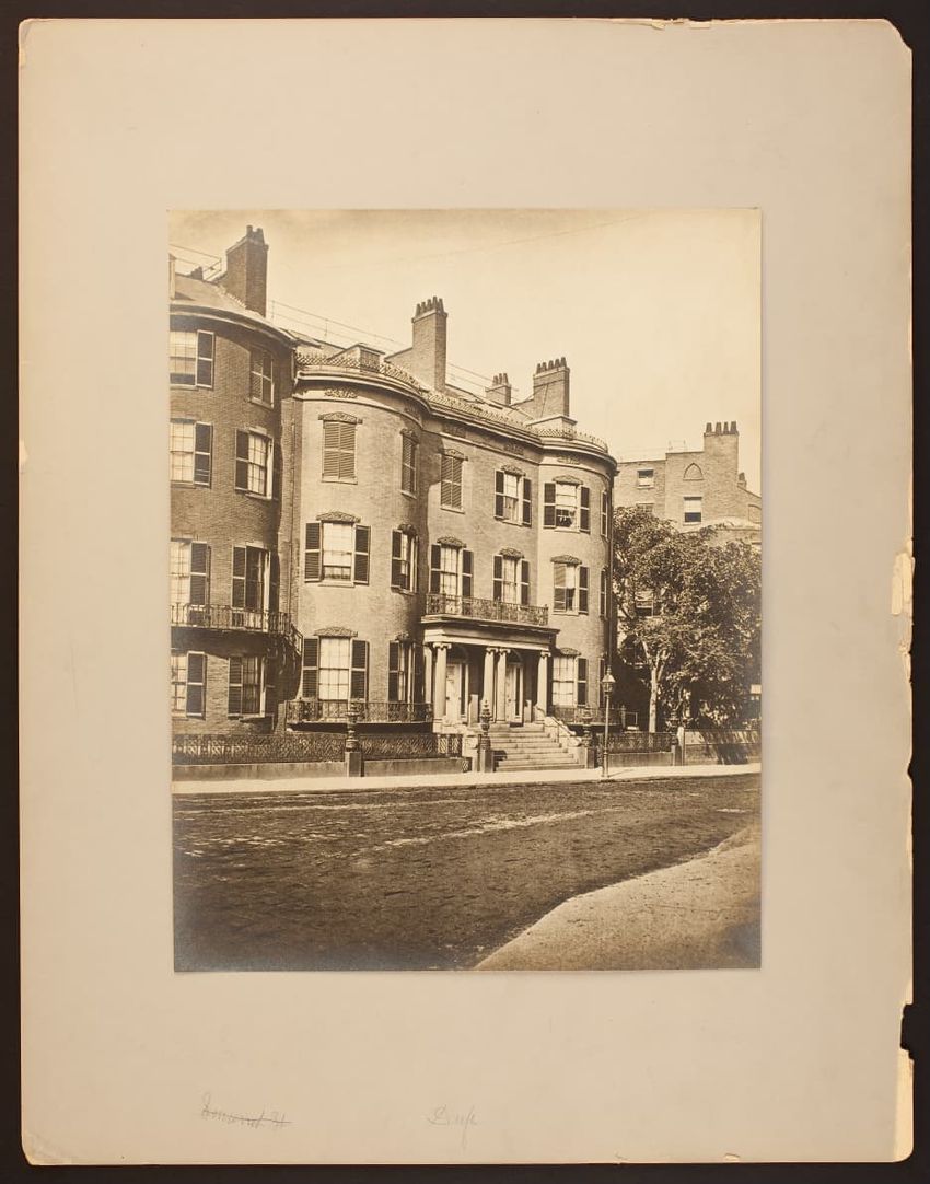 Exterior view of commercial buildings and storefronts between 187 and 195 Massachusetts Avenue, including the Window Box Cafe, the Fenway Barber Shop, The Melody Shop, a shoe and hat repair shop, and a locksmiths/hardware store. Streetcar tracks are in the foreground.