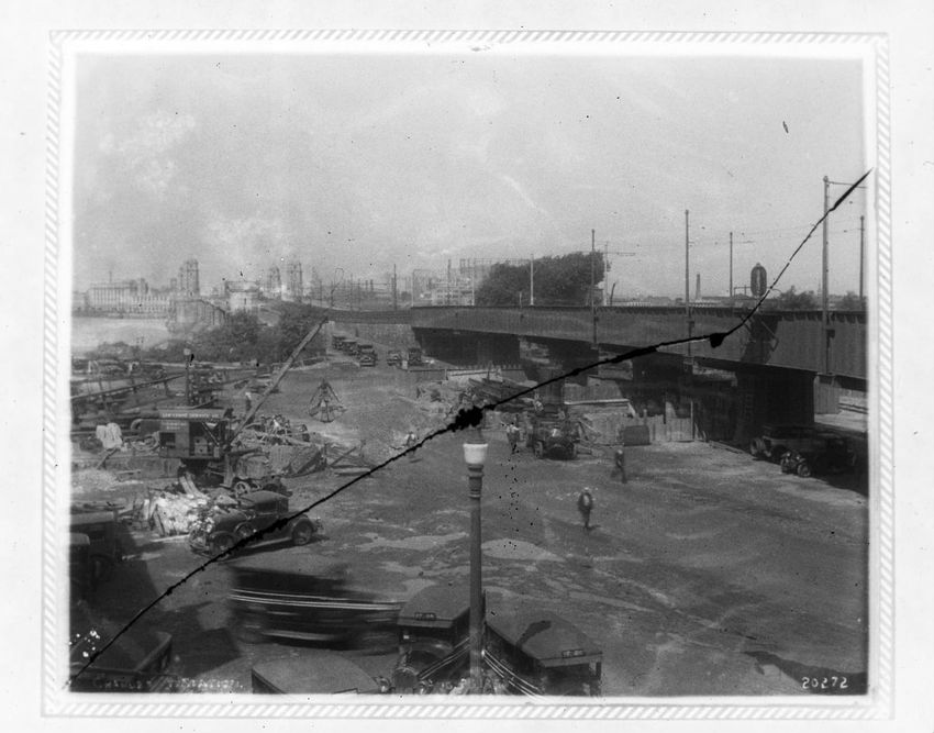 The entrance to the Massachusetts Station is seen on the left with the Boylston Street Bridge in the middle of the image.