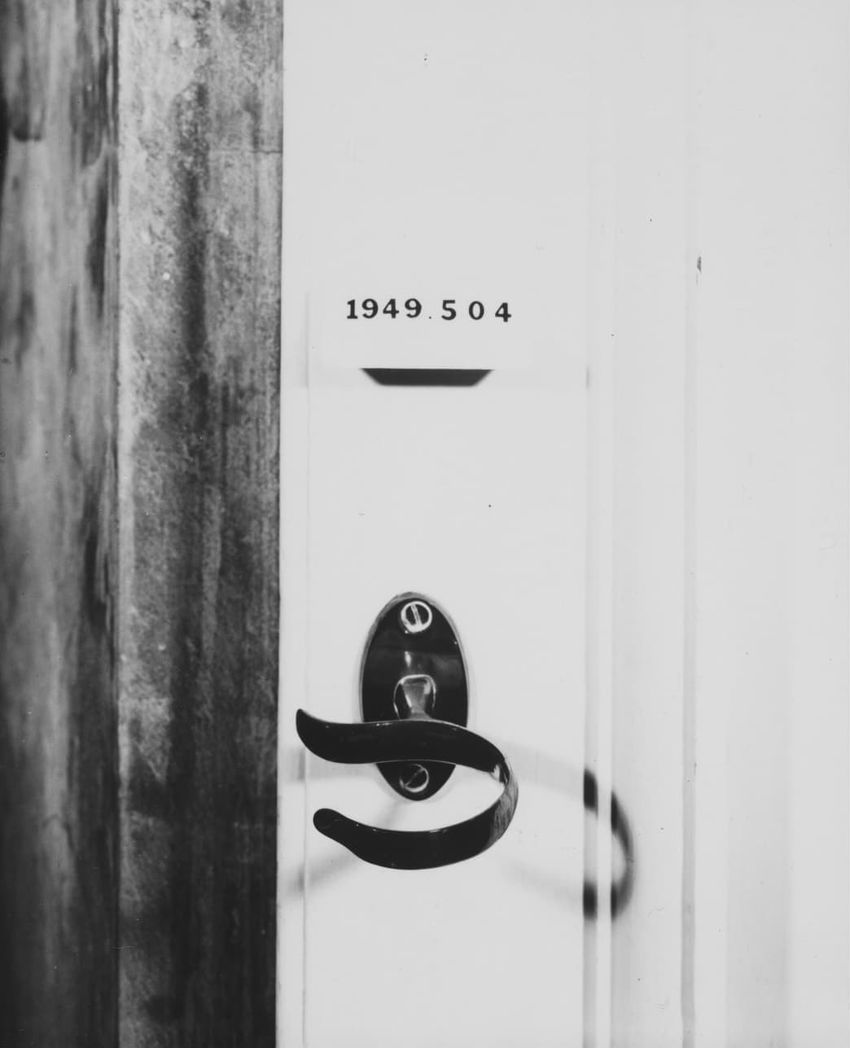 Rectangular, with crowned figure holding harp, cast in relief. Seated under C-scrolled arch, with fleur-de-lis key, resting on classical column.