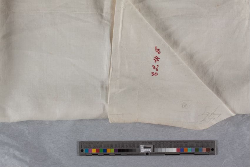 Material: cross-stitching, hand weaving, linen (material), piecing, tabby (textile)