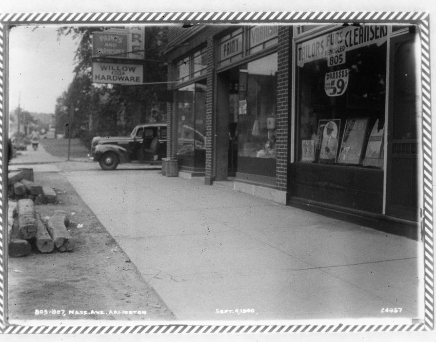 A large sign advertises 1940 packard cars with the trolley tracks in the foregound on Commonwealth Avenue.