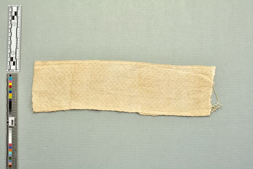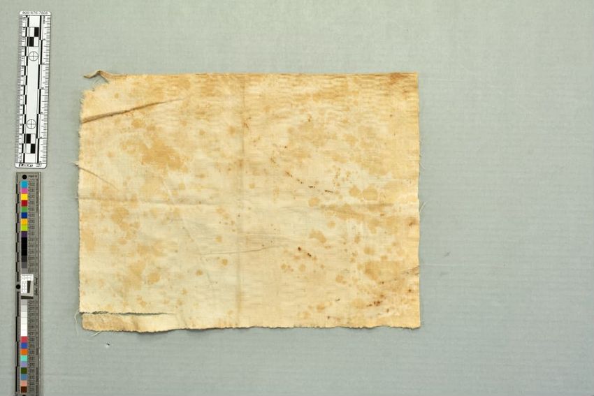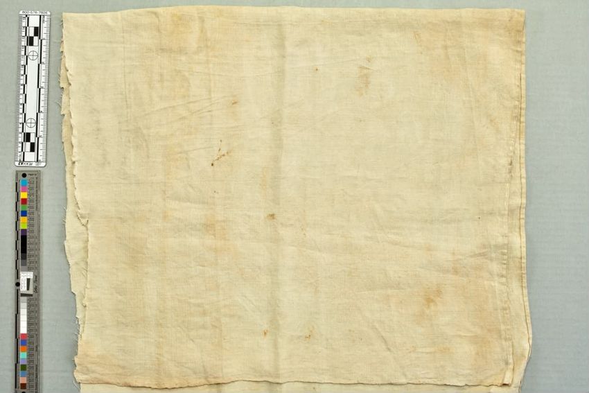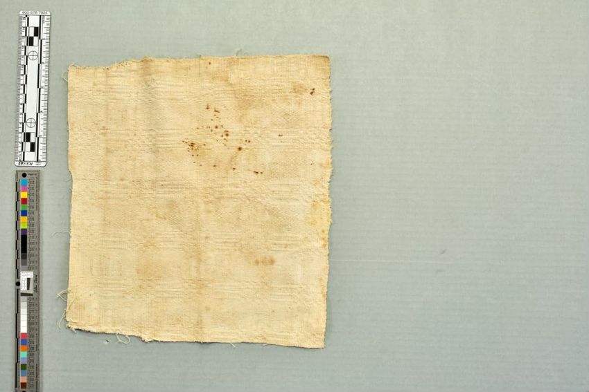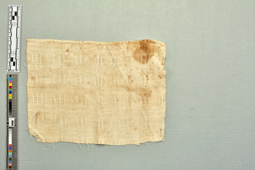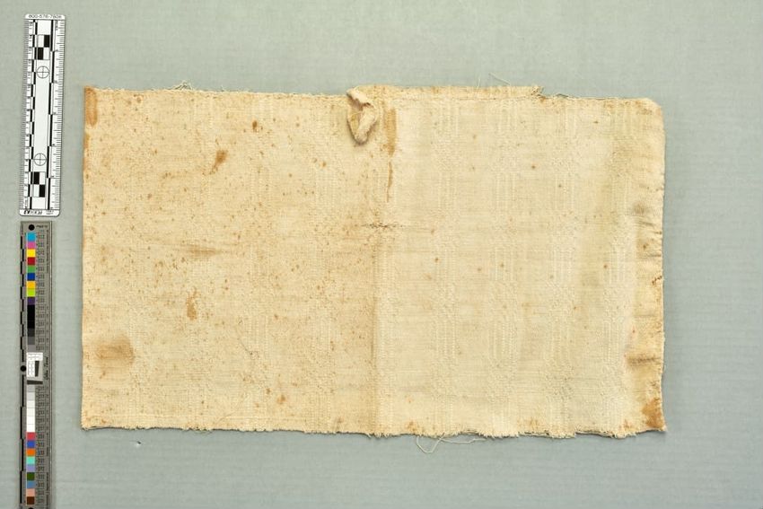 copper engraving (printing process), cotton (textile), fringe, hand weaving, linen (material), machine sewing (technique), net (textile), piecing, tabby (textile), alteration (process and technique), toile (textile material)