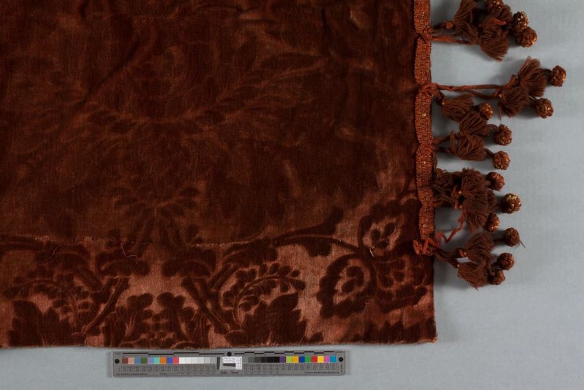 block printing (relief printing process), chintz, cotton (textile), fringe, glazing (coating), piecing, tabby (textile)