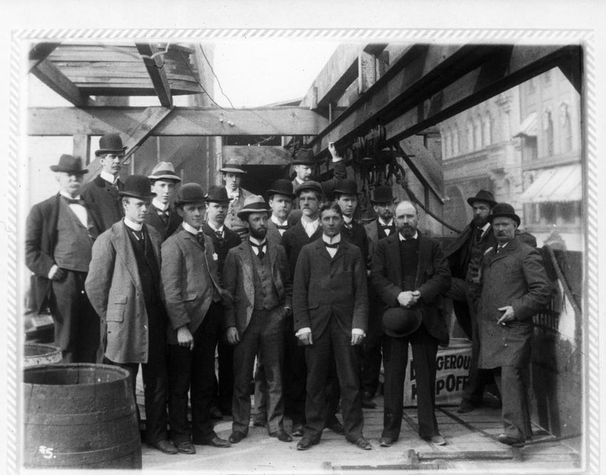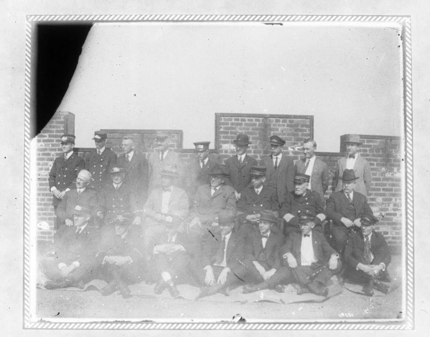 a) Brown glass Mott's apple juice bottle commemorative of American Bicentennial. Yellow merchandising paper label on side. Bicentennial words, edges, and diamond motifs molded on sides.