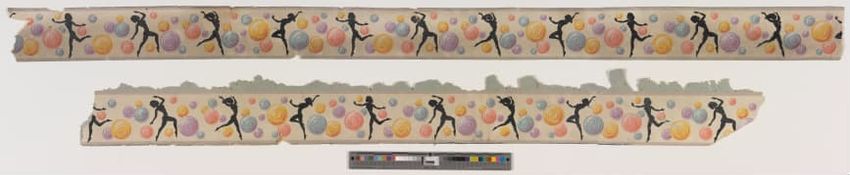One of twelve stenciled plaster wall fragments, including five large pieces; numerous smaller fragments, evidence of green paint on yellow background. 1994.75.6-12 are smaller bits or fragments.