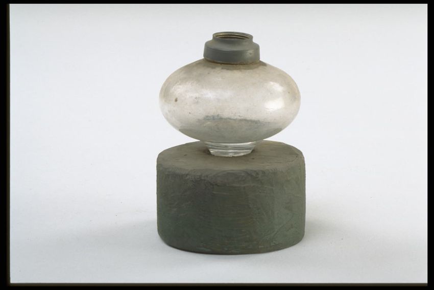 brass (alloy), iron (metal), leather, paper (fiber product), pine (wood)