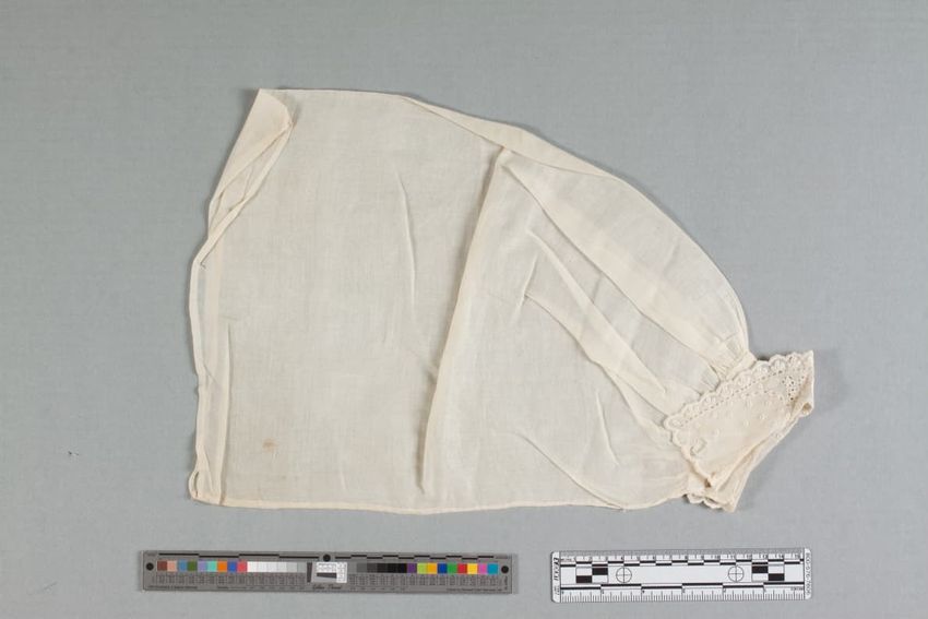 Small, rectangular, domed top, leather-covered trunk. Pine, leather, brass. Brass handles and oval plates at center of top. Leather is held in place with leather strapping and brass studs. Iron hasp and lock plate. Interior is lined with printed Sermons from Newburyport Churches, by Reverend John...
