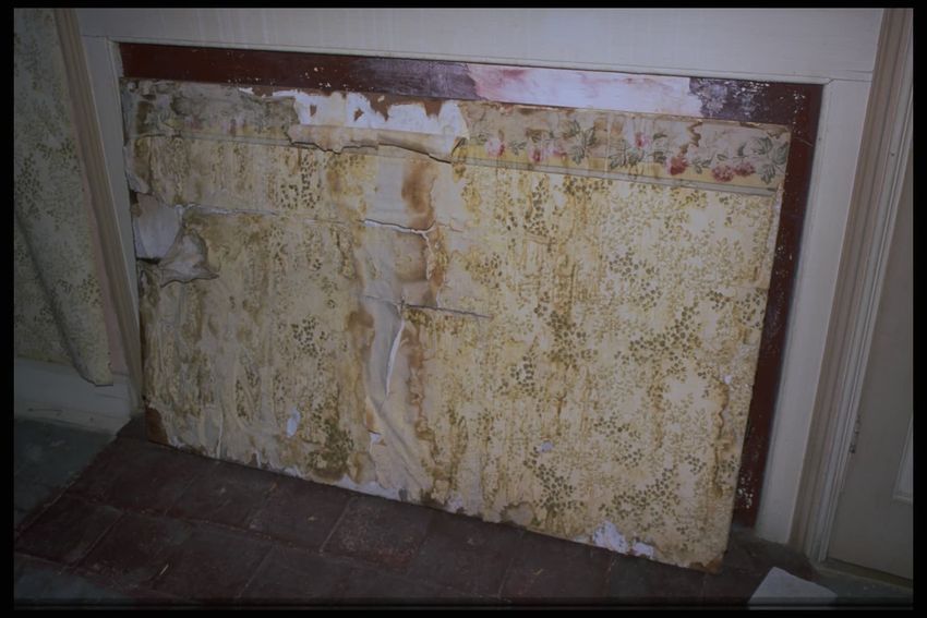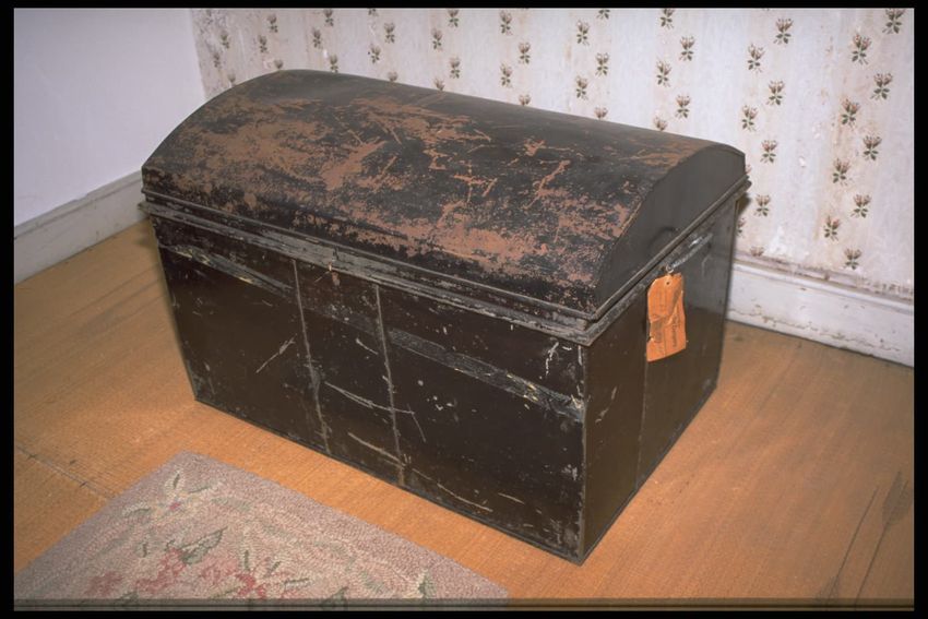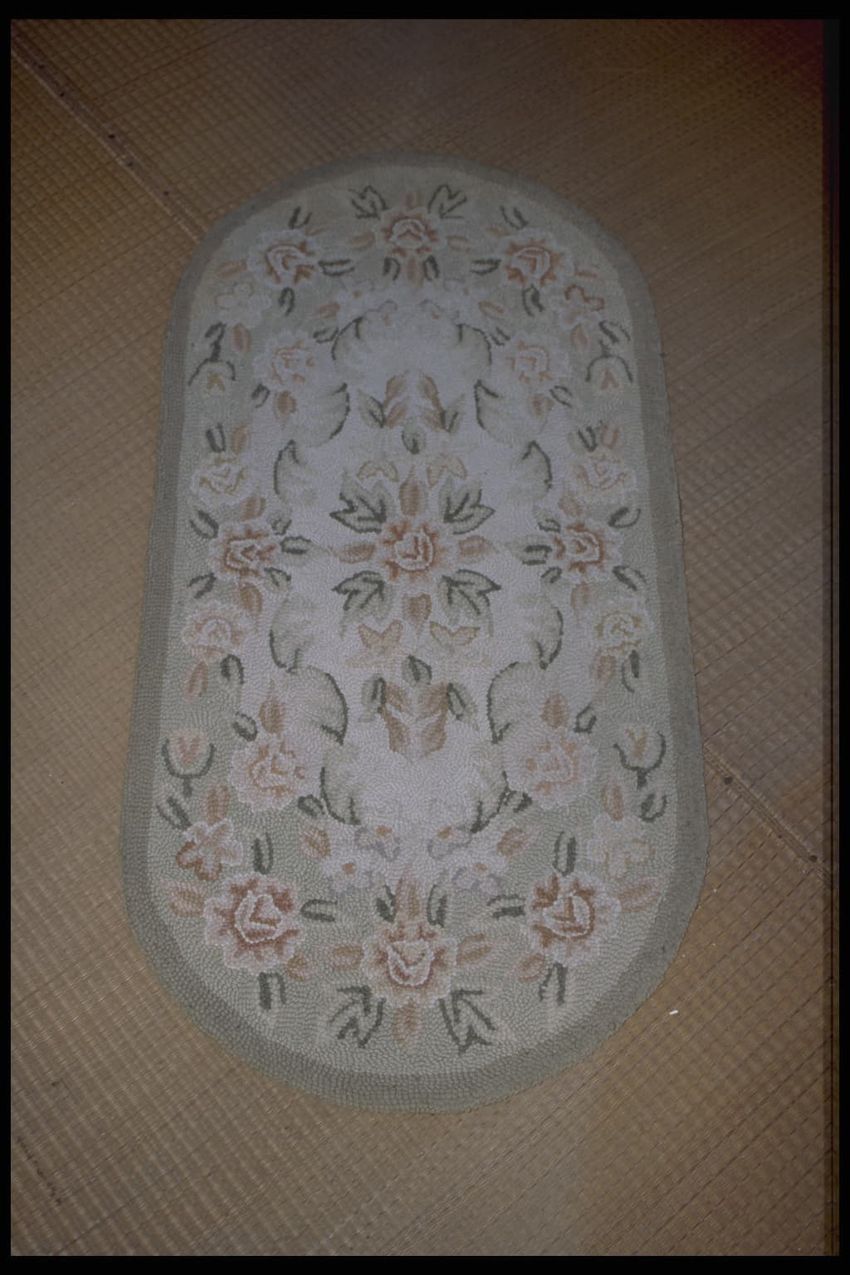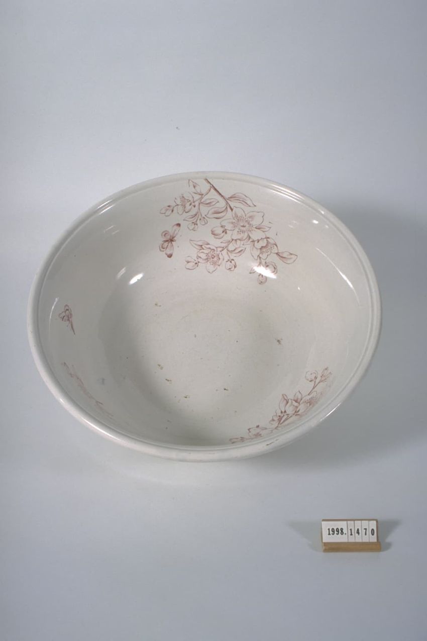 Ironstone wash set; white w/ blue and gilt floral decoration; water pitcher, basin, chamber pot, soap dish w/ liner, sponge dish, toothbrush holder; transfer printed w/ Damask Rose pattern; gold banded edges.