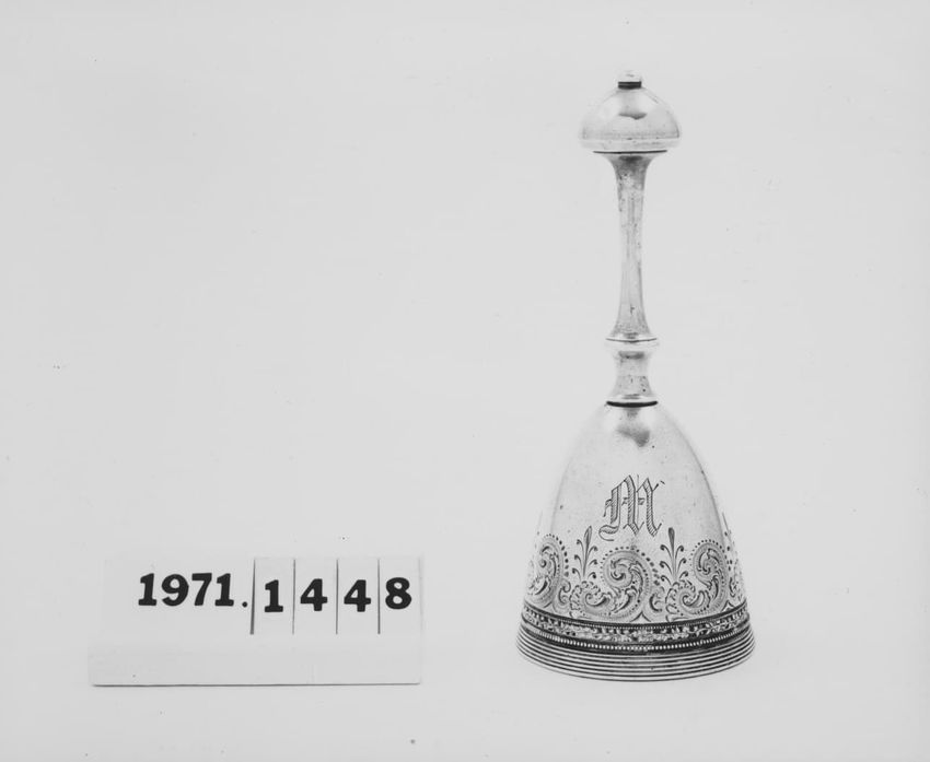 Rococco revival hemispherical bowl with 12 uneven flutes, each flute conforming with the pedestal foot. Rim is draping and downturned. 10 of the flutes are machine engraved with vertical floral patterns. The two remaining flutes, which are wider in size, are engraved with a larger floral pattern.