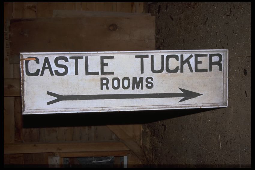 Wooden hay fork, unfinished wood. 2 rake pieces, one handle w/out rake, one rake w/out handle. Handle attaches to rake w/ 2 pieces and iron brackets. 20 prong rake, 6 prongs missing. 5 prongs extend from back of rake on handle piece, 4 missing.
