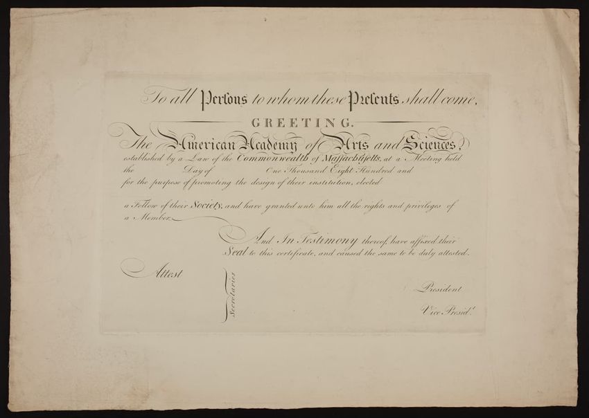 Certificate from the Grand Lodge of Massachusetts admitting Br. Leonard Thompson to the Third Degree of Masonry, November 9, 1825. "Grand Lodge of Massachusetts, John Abbot, Grand Master. Be it known, that Freedom Lodge, in Woburn U.S. of America, is under our jurisdiction; and that full faith may...