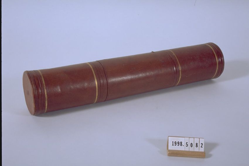 Candlestand. Woods, paint, metal. Plain round top with painted rosewood graining (black glaze over red basecoat); pedestal with tapered cylinder and ring turning terminating in elongated baluster form, ending in a layer ring and shorter vase form. Rosewood-grained pedestal, black glaze over brown...