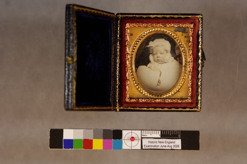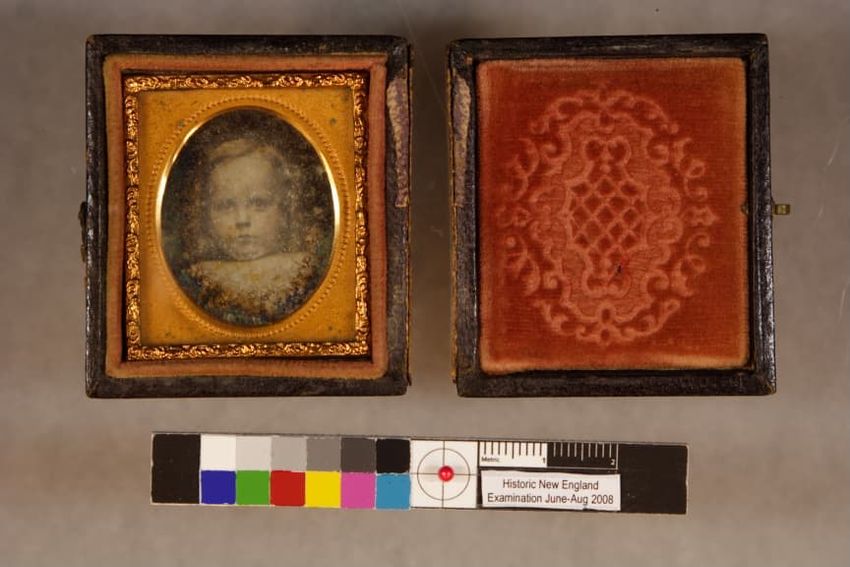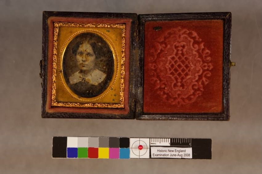 Portrait of young woman; very poor condition. May be closer to a 1/16 case.