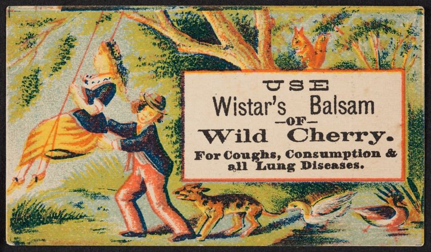 Sapanule cures rheumatism, neuralgia, lumbago and all inflammatory pains. It is recommended by Henry Bergh, President of the American Society for Prevention of Cruelty to Animals. "Everard H. Kelley, Family Druggist" is stamped on the card verso. Croquet is played by four individuals in the card ima...