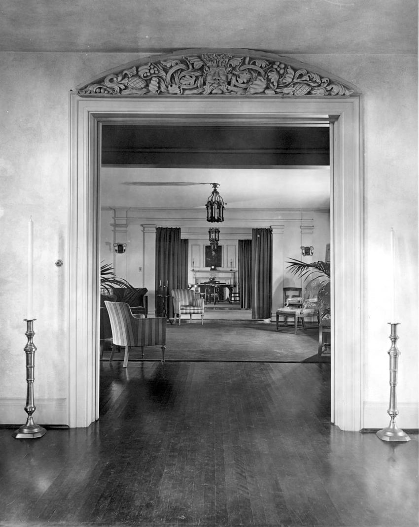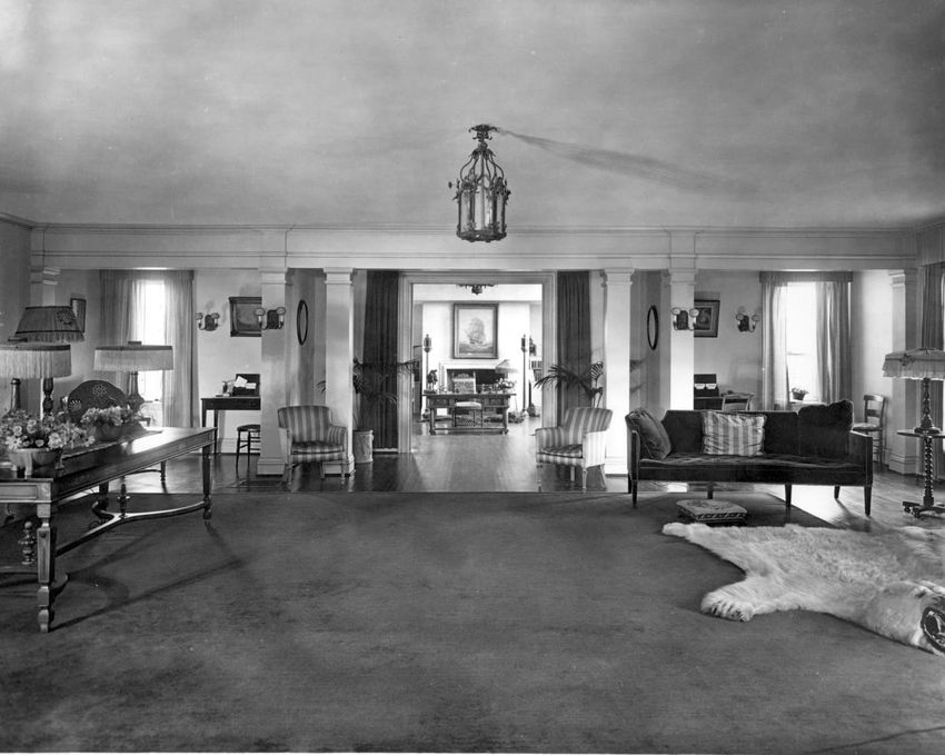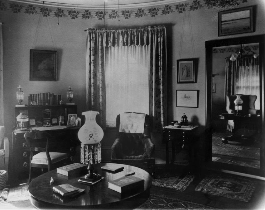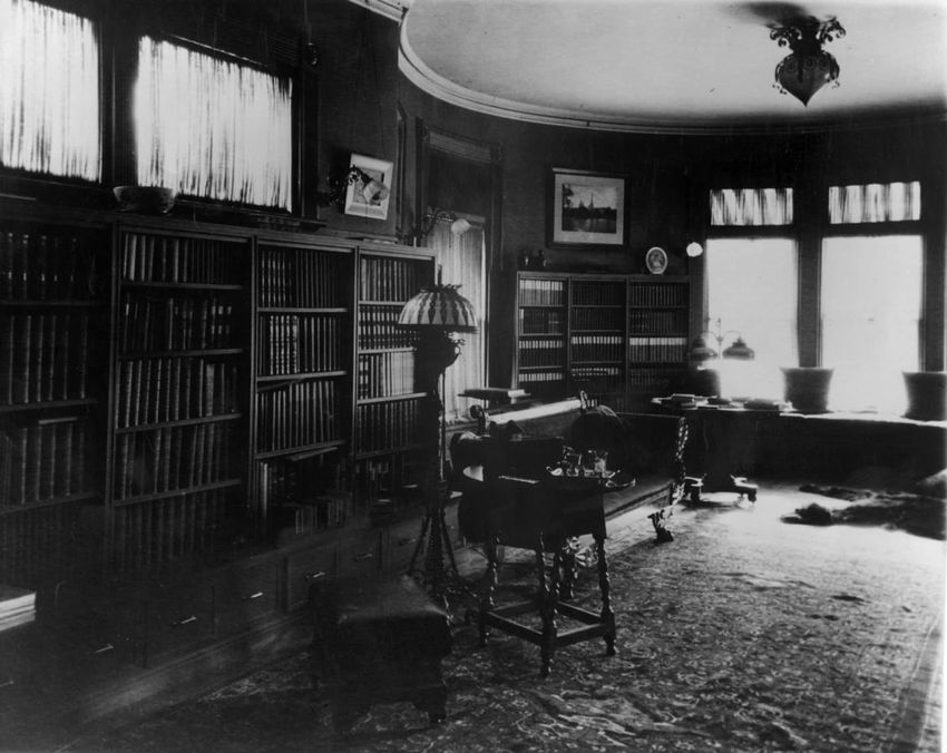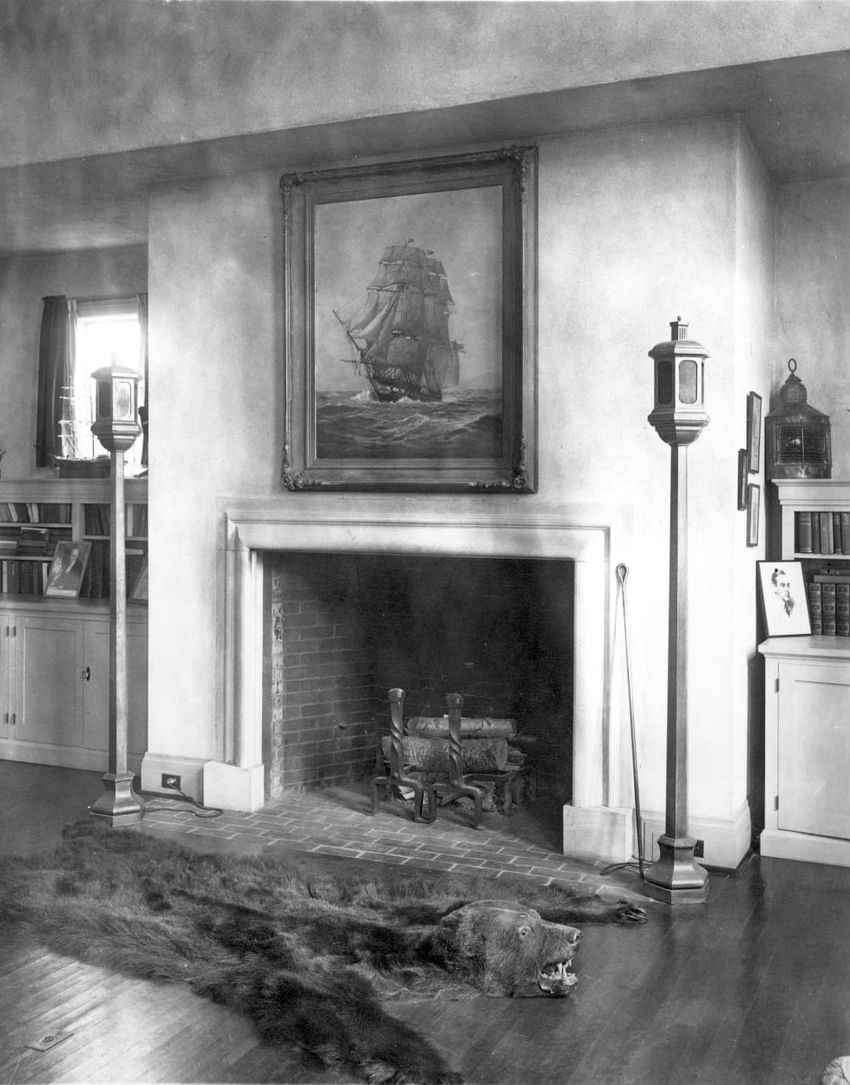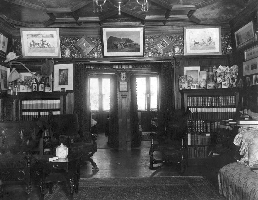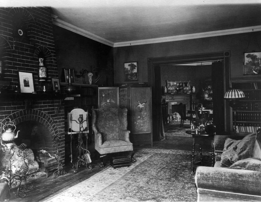 Interior photograph of the dormitory sitting room of Alfred Gwynne Vanderbilt and William Fitz Hugh Whitehouse, Jr. at Yale University in New Haven, Connecticut. They graduated in 1899. Vanderbilt died when a German U-boat sank the ocean liner RMS Lusitania on May 7, 1915.
