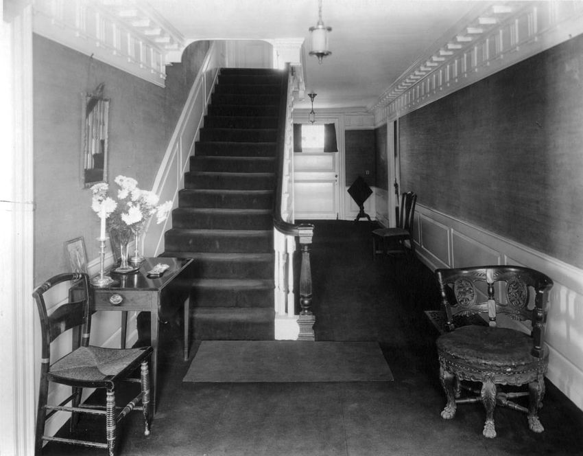 Interior photograph of the entrance hall in the Willard House, Colchester, Conn.
