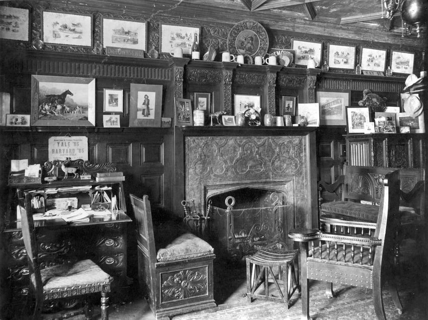 Interior photograph of the dormitory sitting room of Alfred Gwynne Vanderbilt and William Fitz Hugh Whitehouse, Jr. at Yale University in New Haven, Connecticut. They graduated in 1899. Vanderbilt died when a German U-boat sank the ocean liner RMS Lusitania on May 7, 1915.