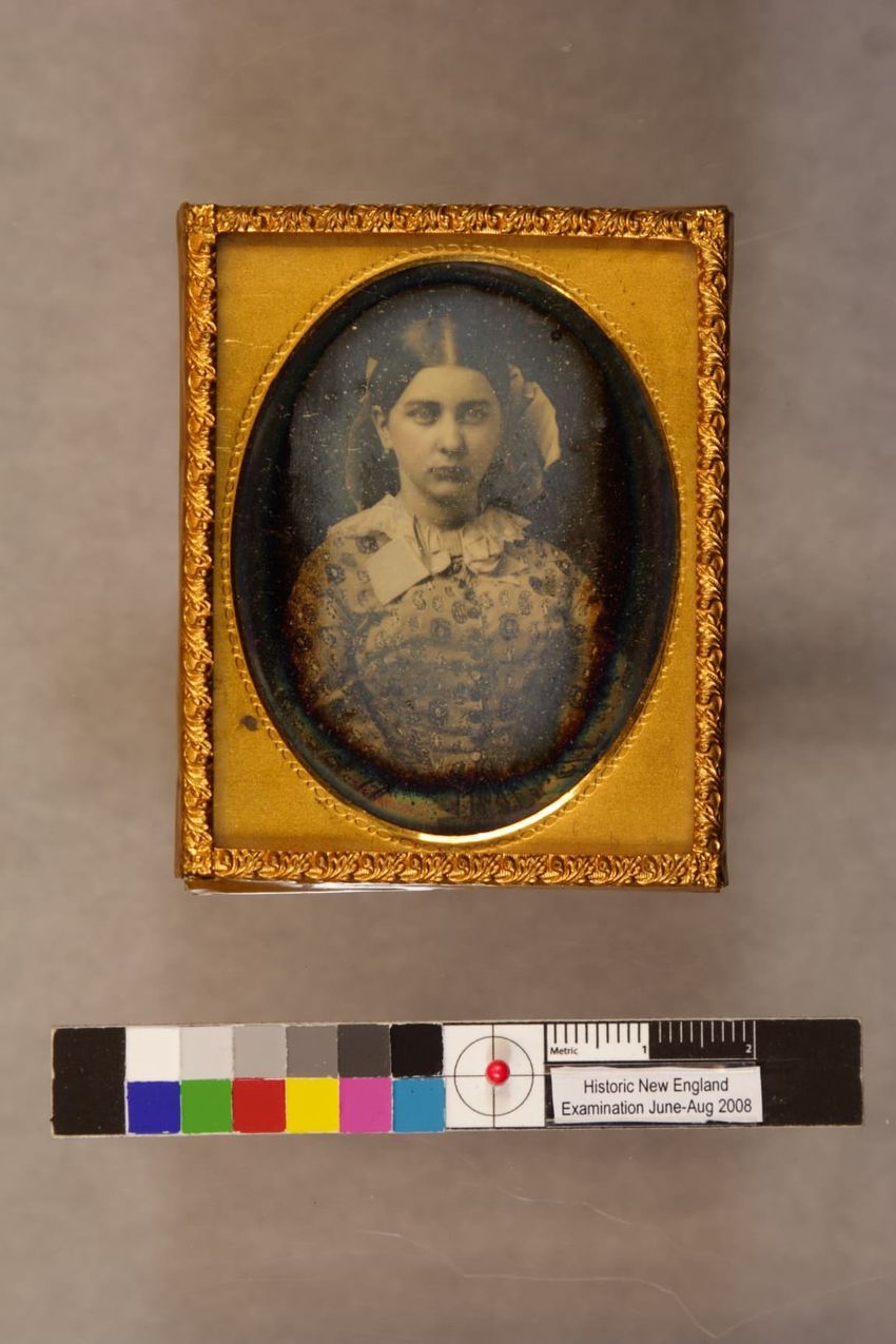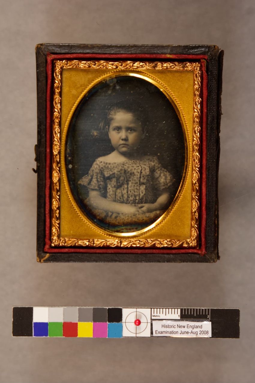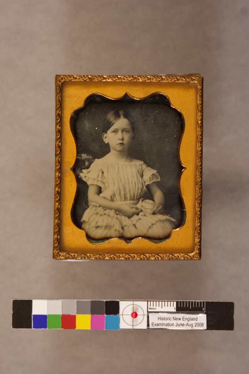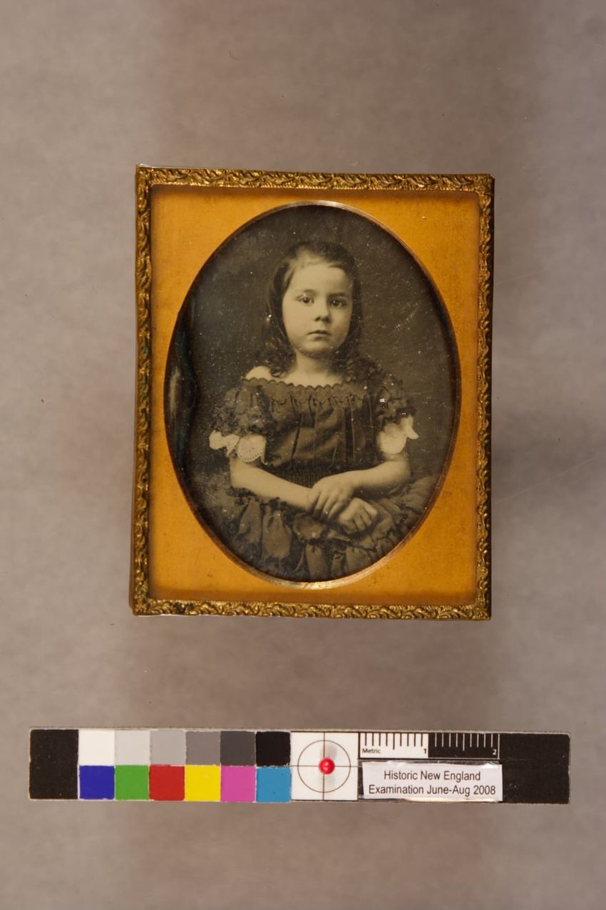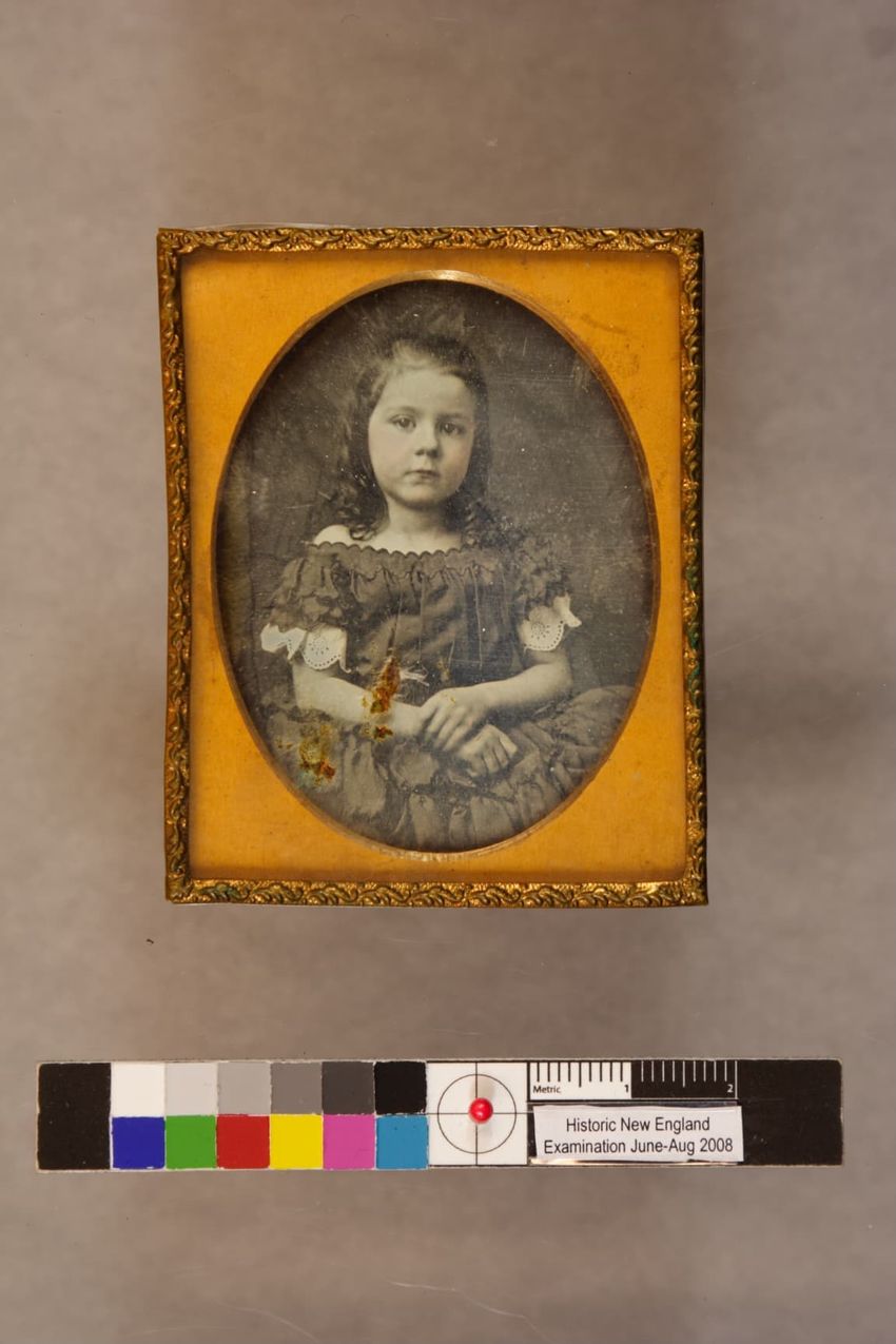 Girl, about 12, with hair in ringlets. Alfred P. Critchlow began manufacturing cases in 1853 in Florence, Massachusetts.