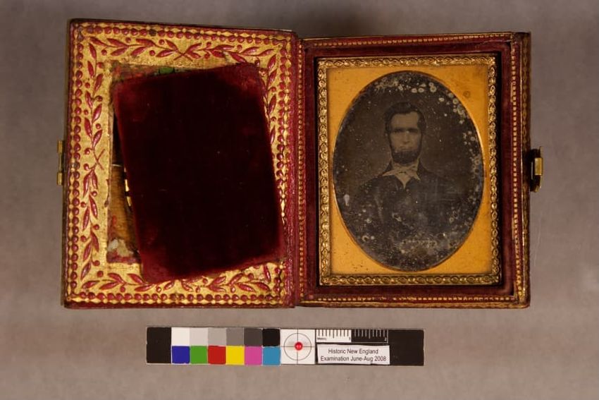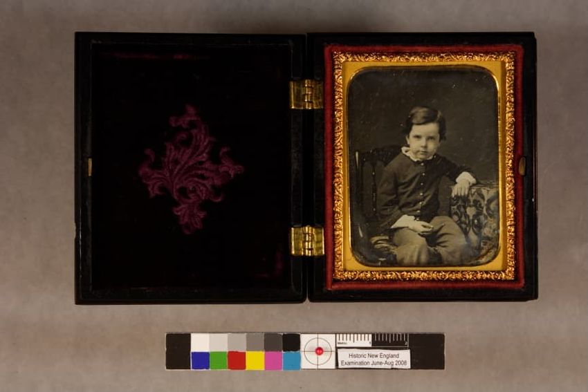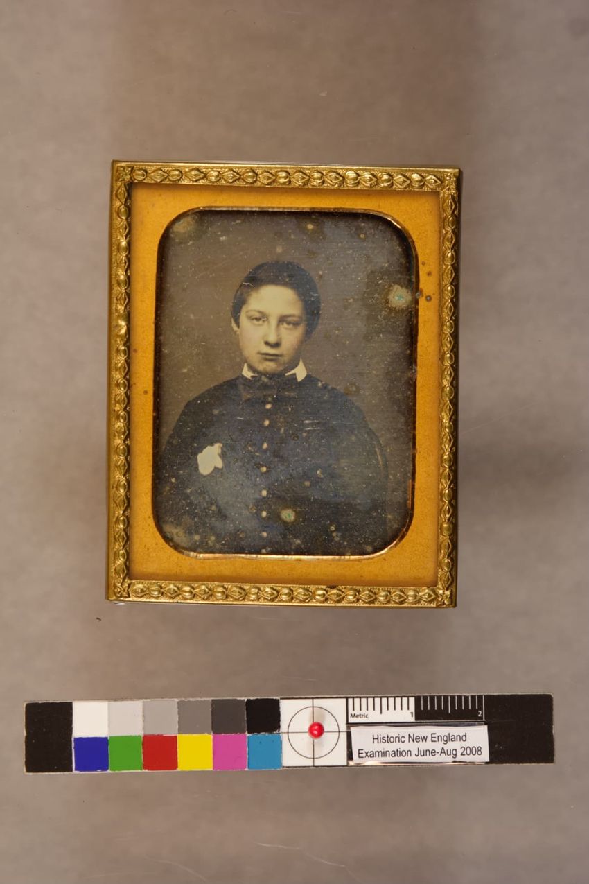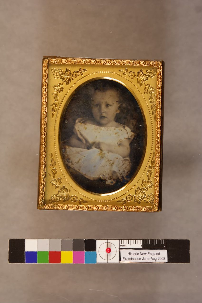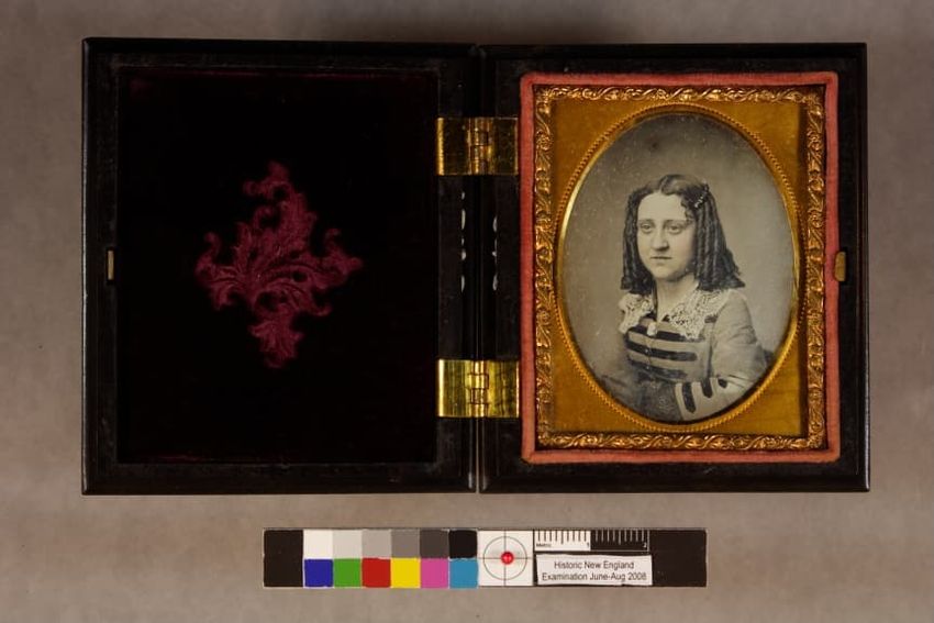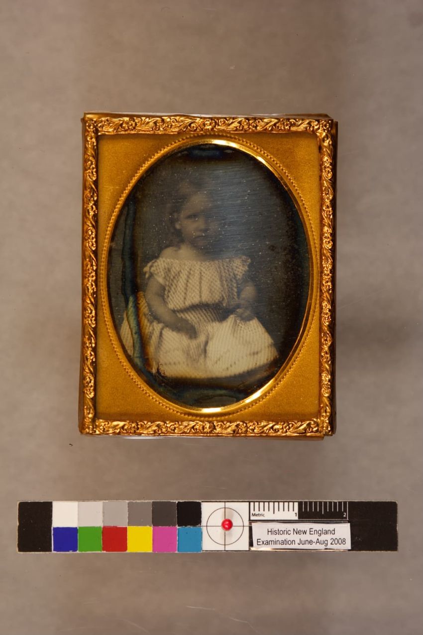 Girl, about 12, with hair in ringlets. Alfred P. Critchlow began manufacturing cases in 1853 in Florence, Massachusetts.