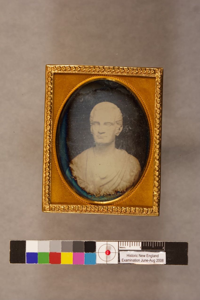 Photographic copy of sculpted bust portrait of man with drapery; See also D.2.006 and D.2.012