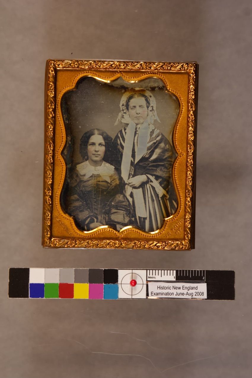 Barbara and Charlotte Cotton, as young women, dressed in fancy outerwear. Gift of Mrs. E.H. Lansing.