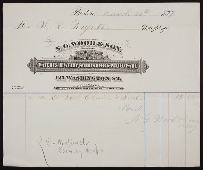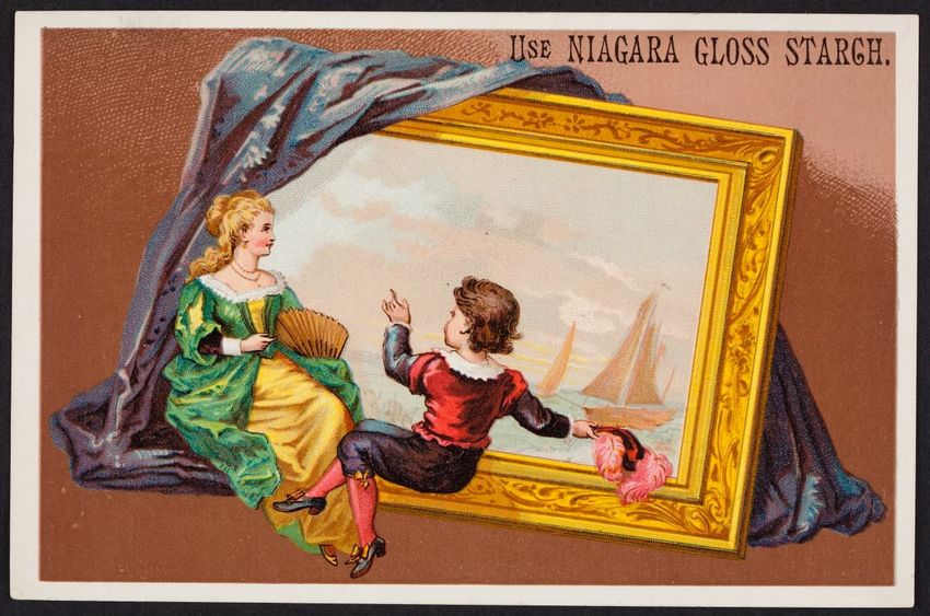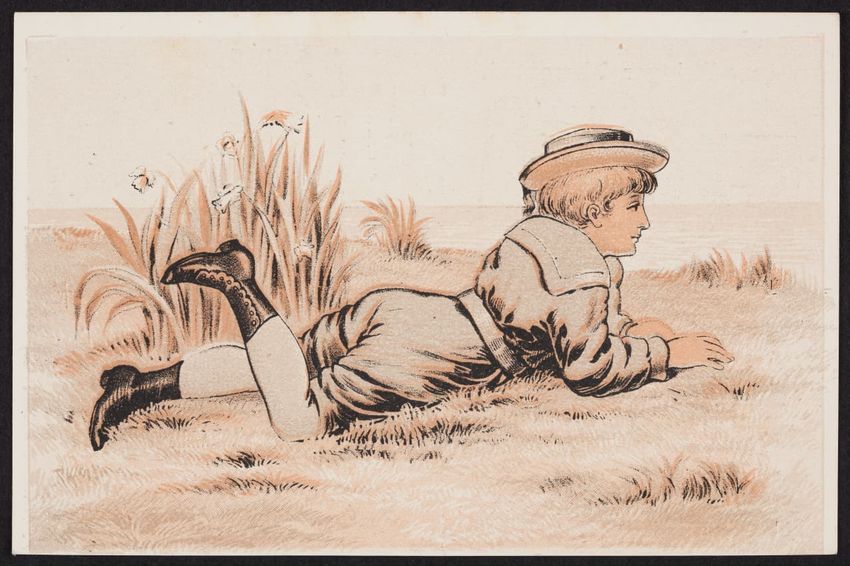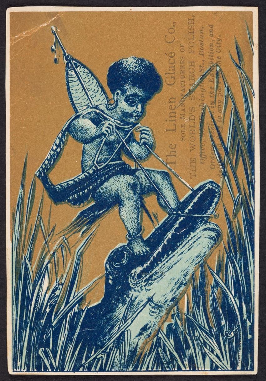 The product features are described on the card verso. The item is carried by Boynton & Thissell, hardware & cutlery, No. 217 Essex Street, Lawrence, Massachusetts. Boynton & Thissell are the successors to W.A. Kimball. A young boy flies a kite next to a lake with buildings in the background.