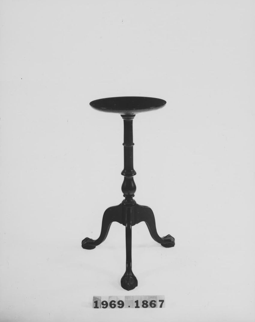 Circular top; slightly raised edge; tripod legs; ball and claw feet