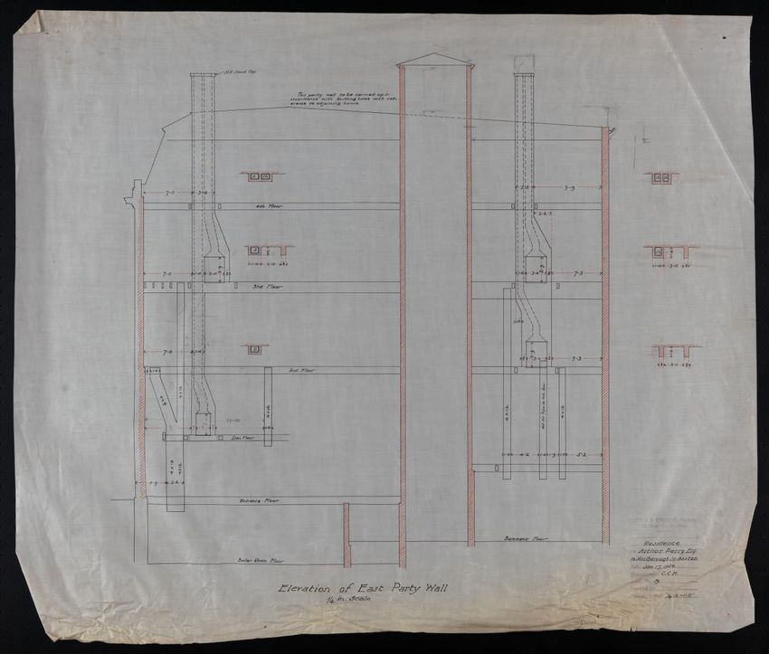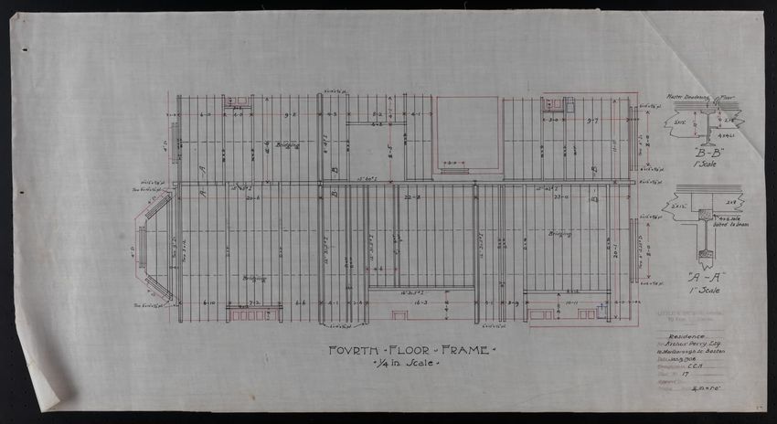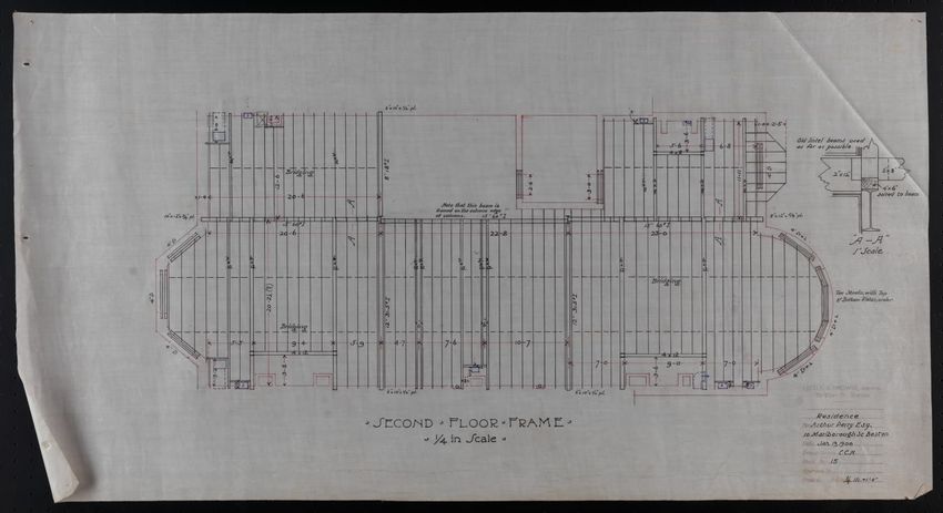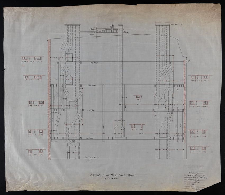 The ruler commemorates the 100th anniversary of the "Boston evening transcript," 1830-1930. The verso text reads "Boston's Book Paper." A mailing label for the Society for the Preservation of New England Antiquities is attached to the outside of the mylar sleeve.