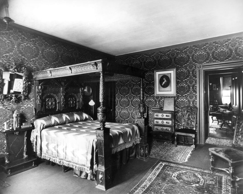Interior photograph of a bedroom in the Franklin Haven House, 97 Mount Vernon St., Boston, Mass.
