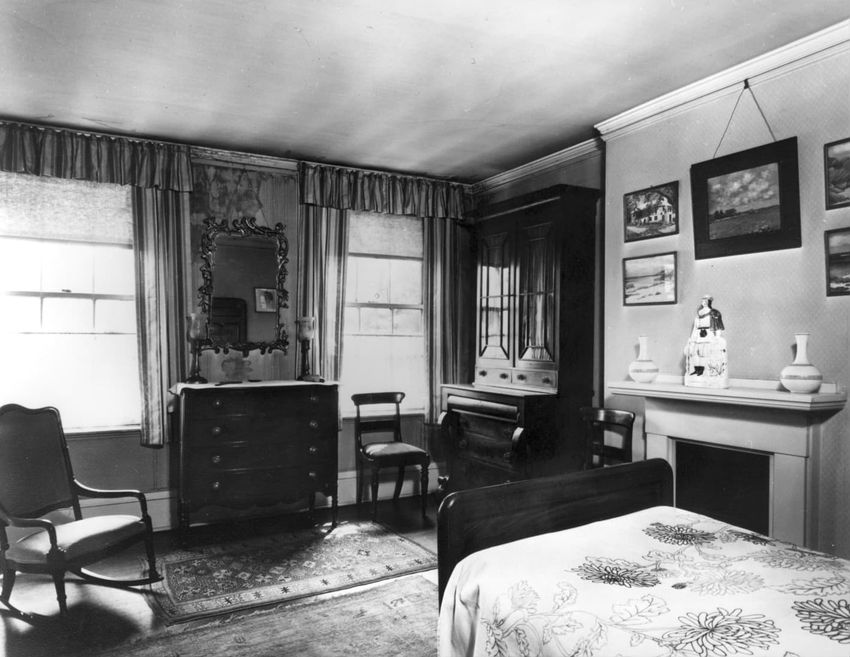 Interior photograph of a bedroom in the second Harrison Gray Otis House, 85 Mount Vernon St., Boston, Mass.