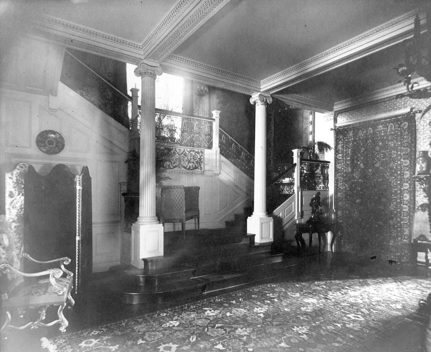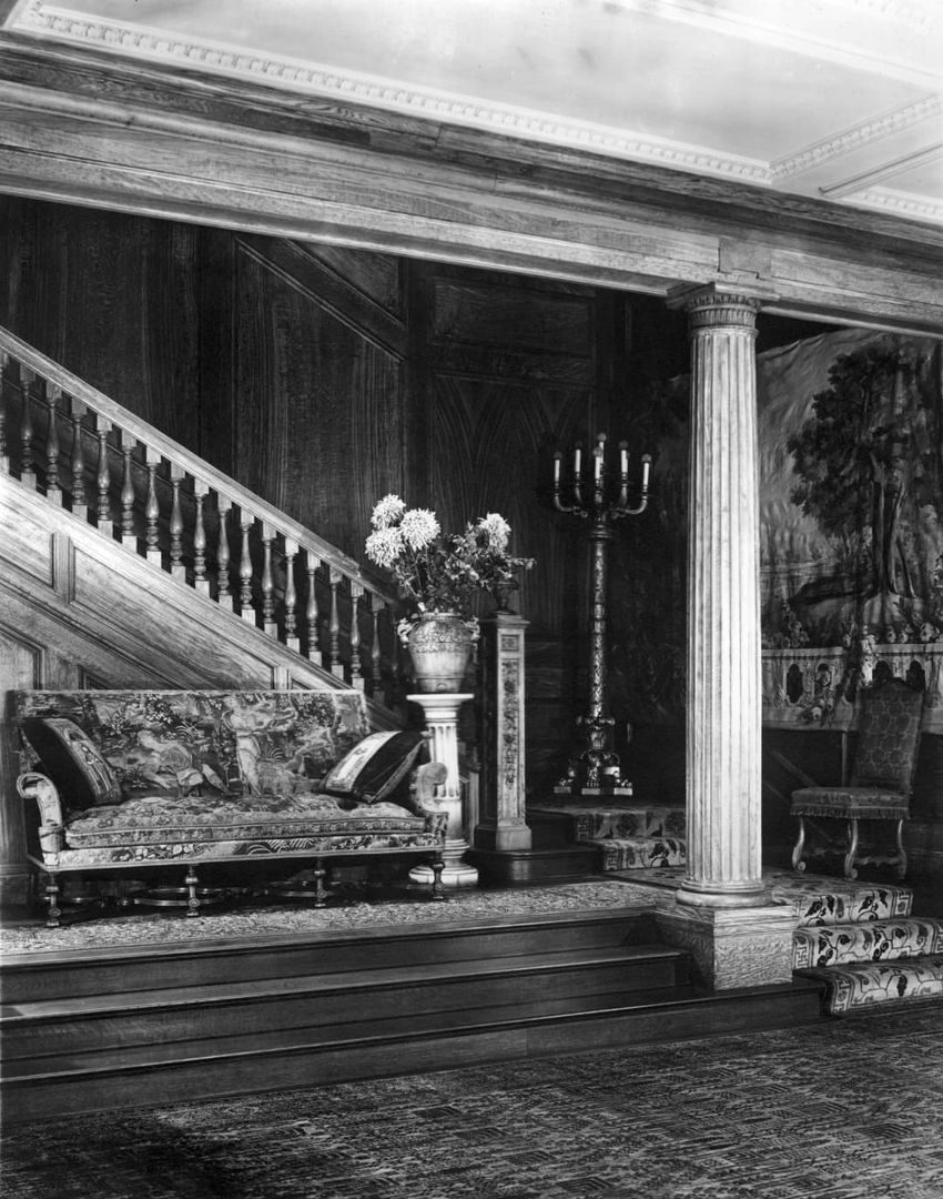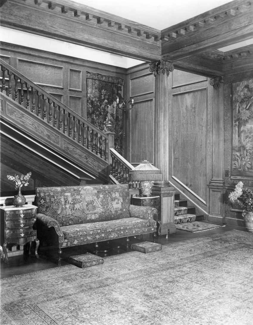 Interior photograph of the entrance hall in the Frank Skinner House, 266 Beacon St., Boston, Mass.