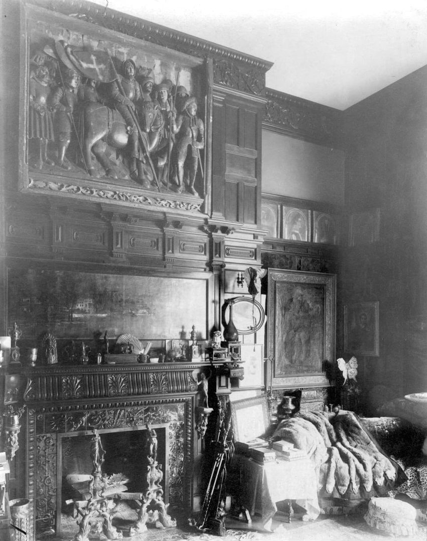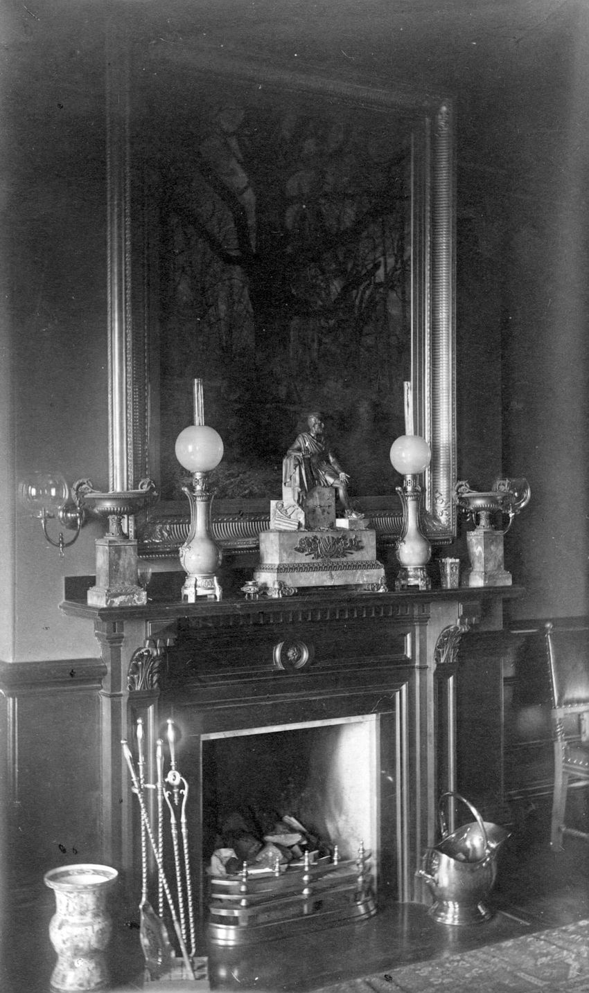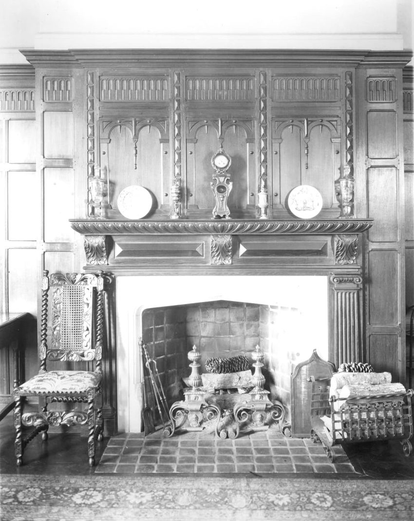 Interior photograph of the library fireplace in the Alvan T. Fuller House, 150 Beacon St., Boston, Mass.