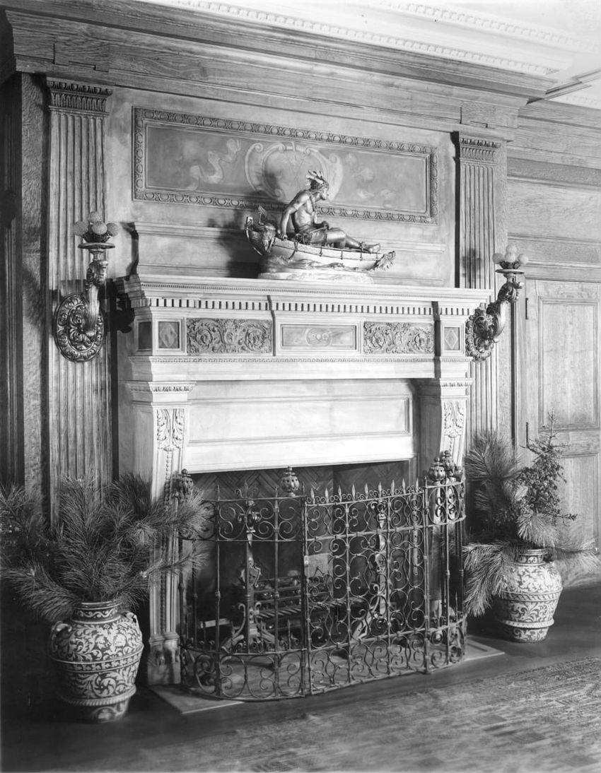 Interior photograph of a fireplace in the Alvan T. Fuller House, 150 Beacon St., Boston, Mass.