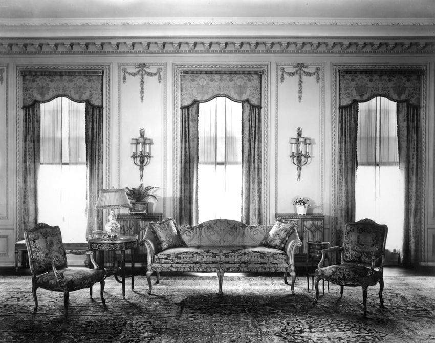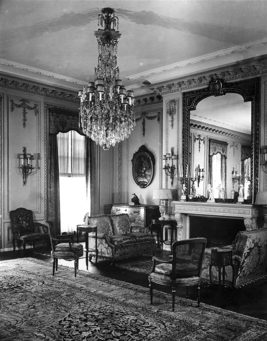 Interior photograph of a parlor (reception room) in the Alvan T. Fuller House, 150 Beacon St., Boston, Mass.