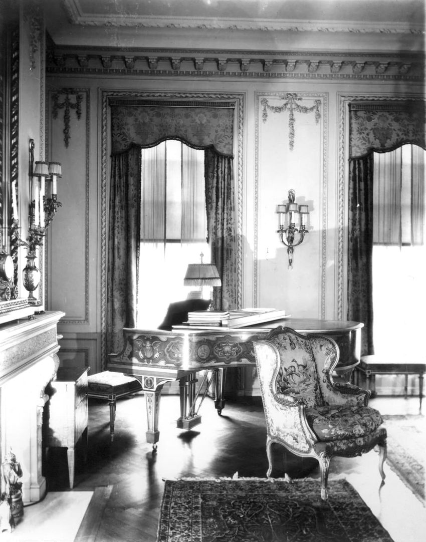 Interior photograph of the music room in the Alvan T. Fuller House, 150 Beacon St., Boston, Mass.