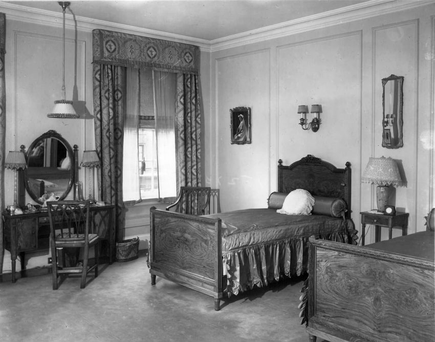 Interior photograph of a guest bedrrom in the Alvan T. Fuller House, 150 Beacon St., Boston, Mass.