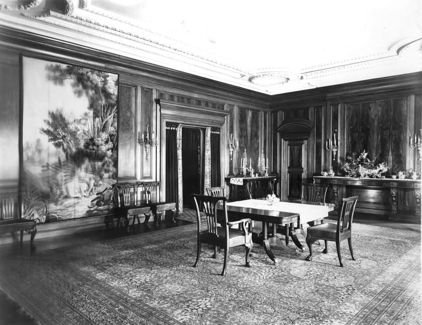 Interior photograph of the dining room in the Alvan T. Fuller House, 150 Beacon St., Boston, Mass.