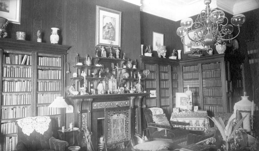 Interior photograph of the library in the Alvan T. Fuller House, 150 Beacon St., Boston, Mass.