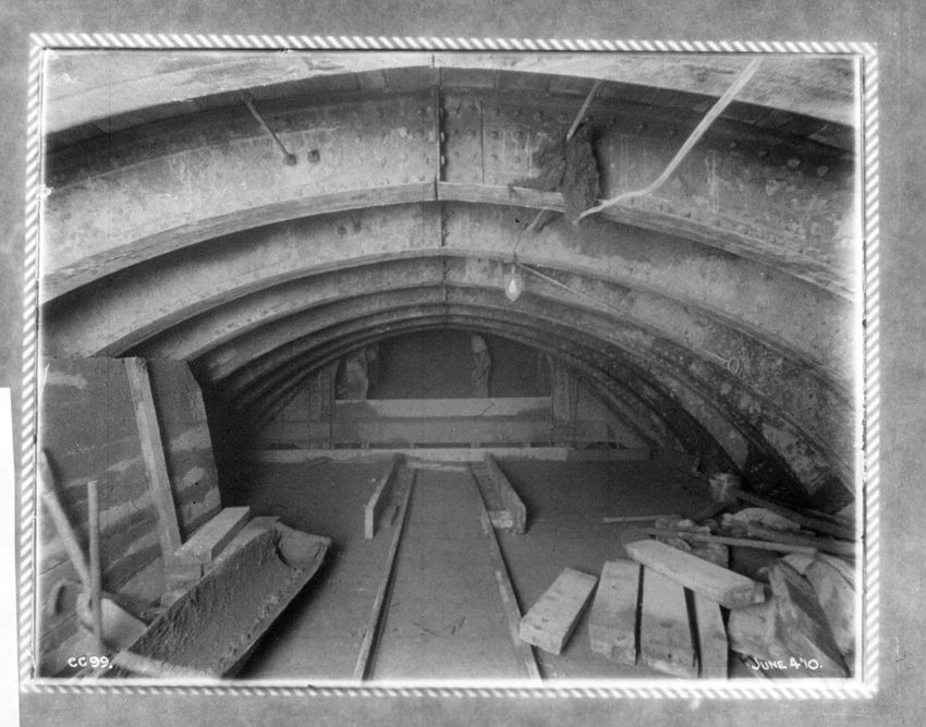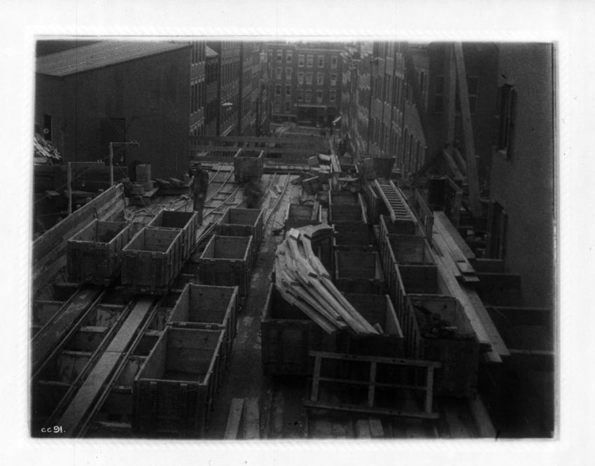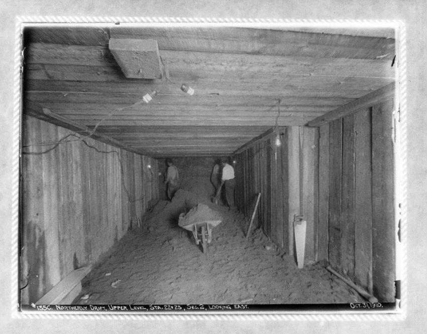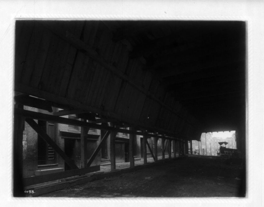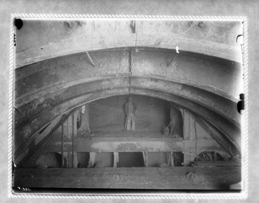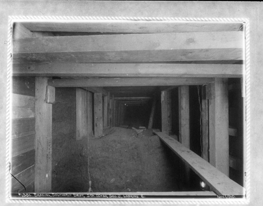 Supporting a 30" water pipe over the tunnel during construction, looking n. w.