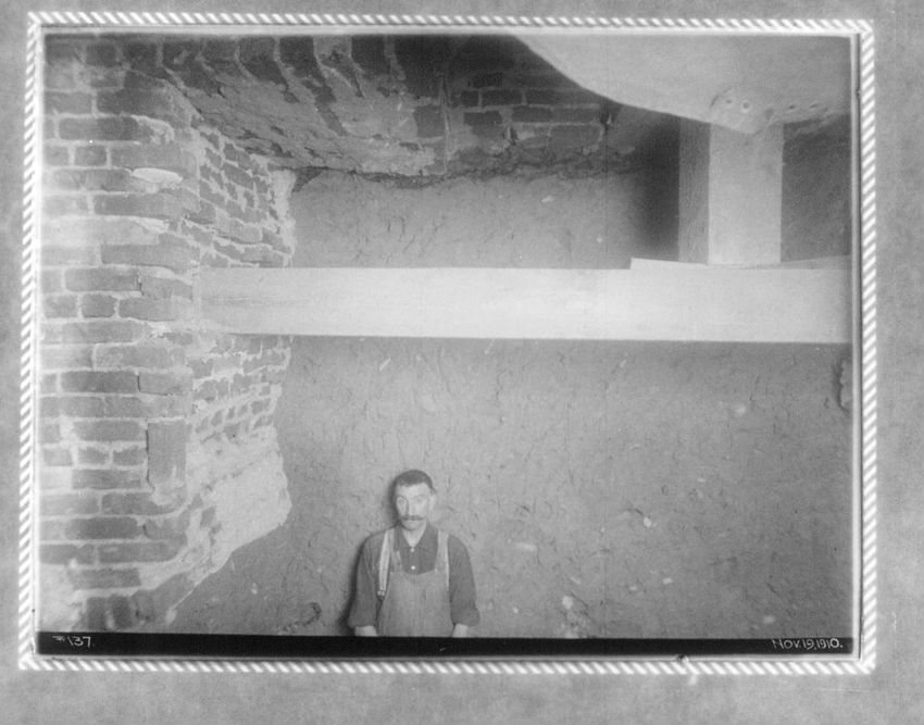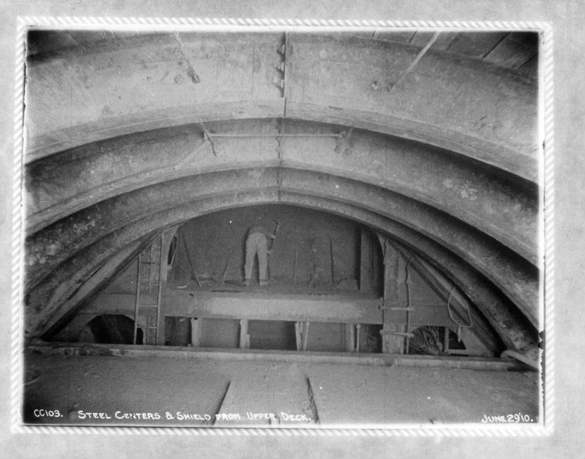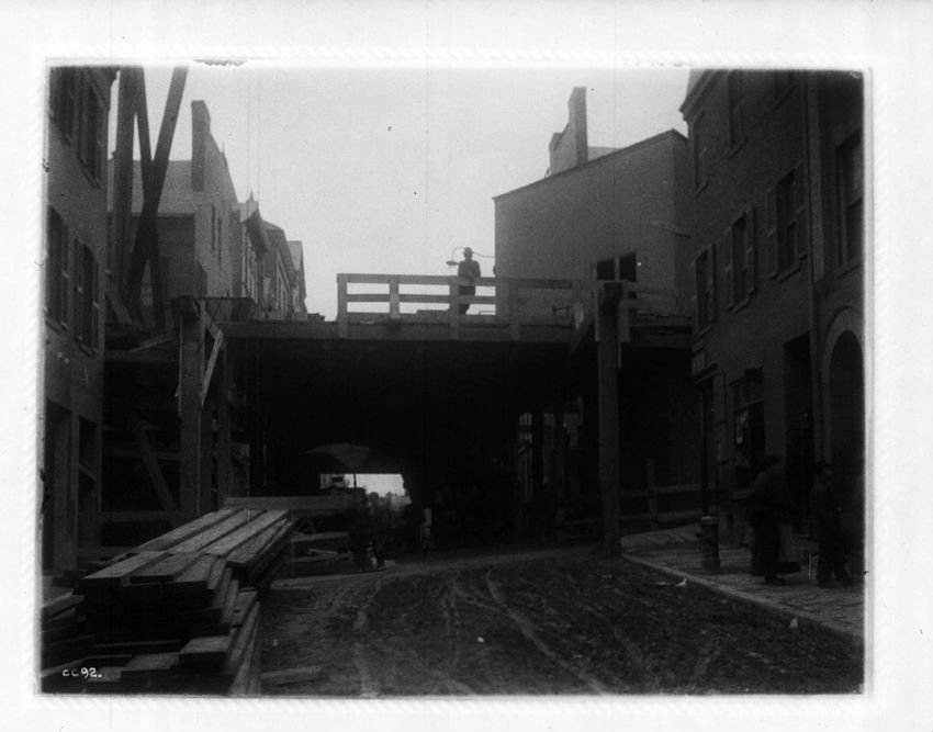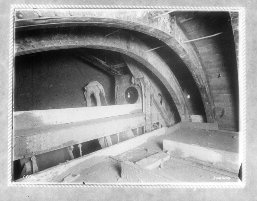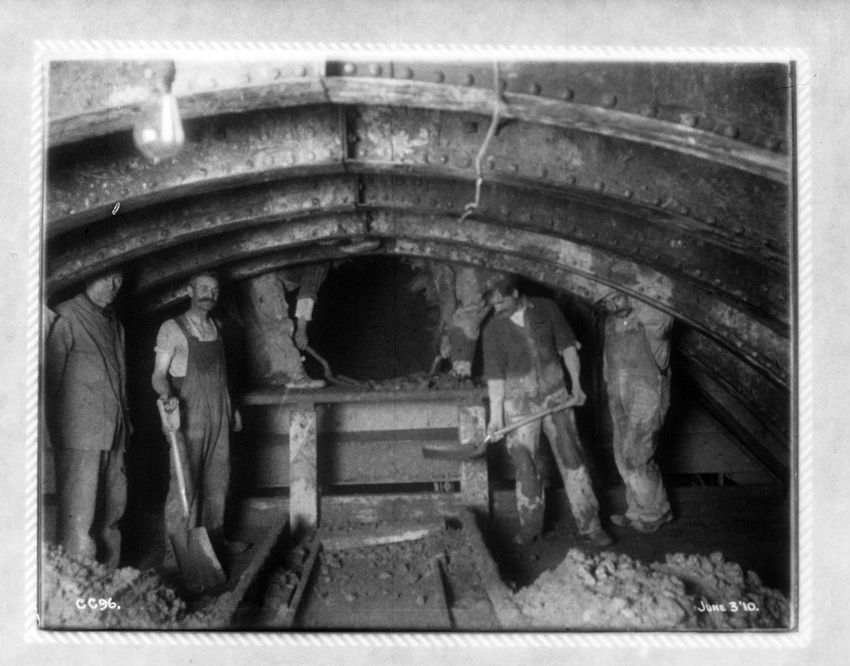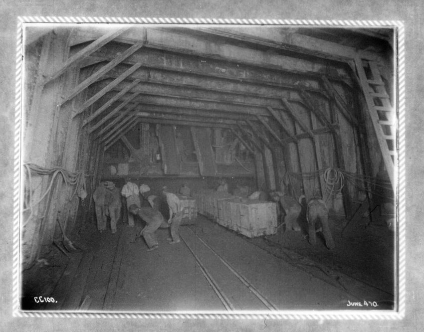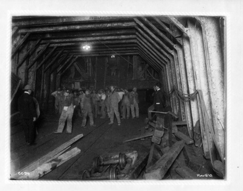 Supporting a 30" water pipe over the tunnel during construction, looking n. w.
