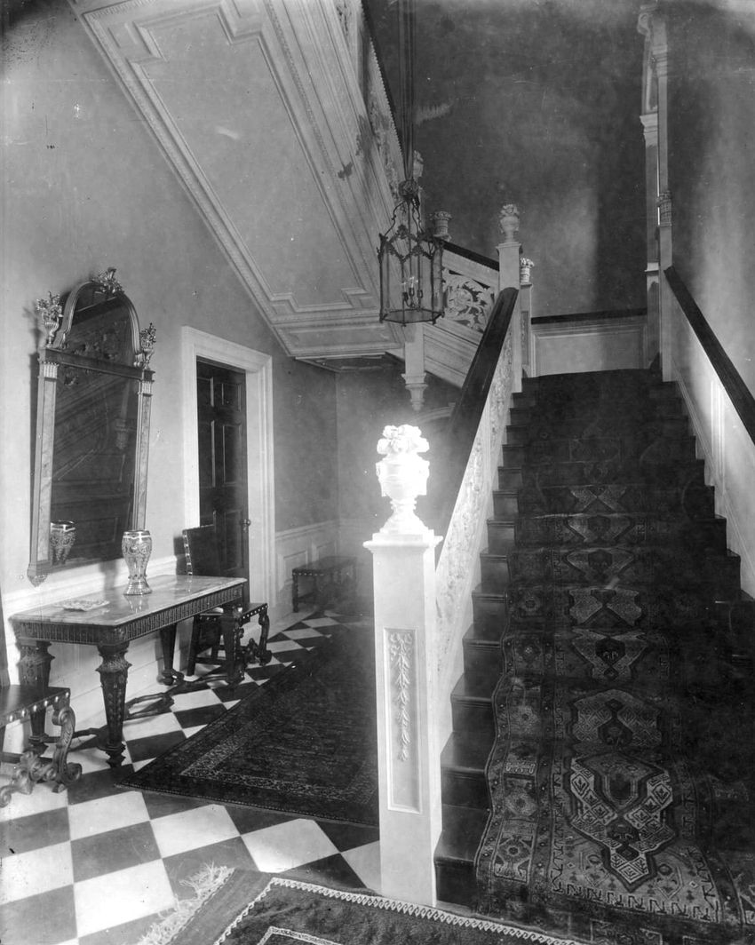 Interior photograph of the entrance hall in the Gardner Brewer House, 29 Beacon St., Boston, Mass.