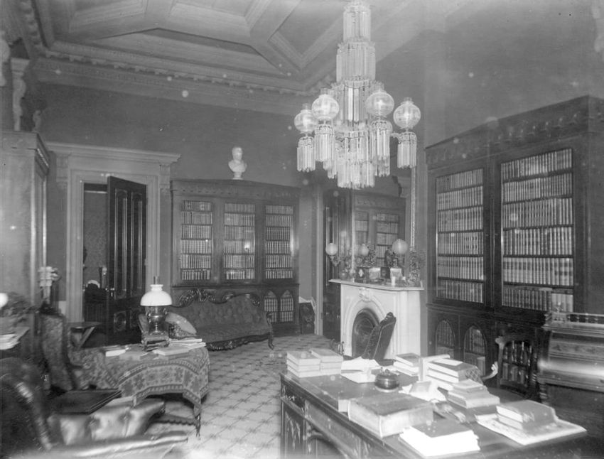Interior photograph of the library in the Franklin Haven House, 97 Mount Vernon St., Boston, Mass.