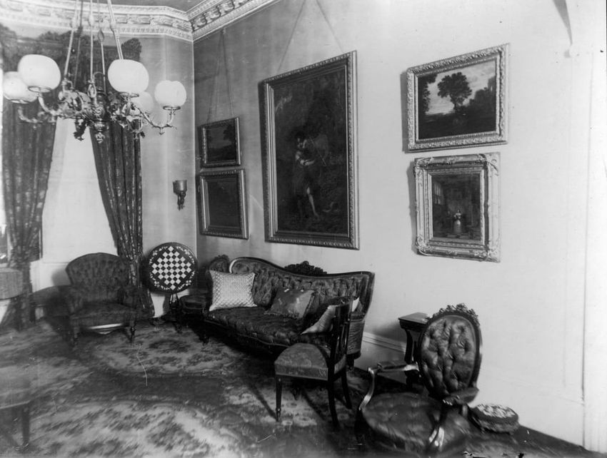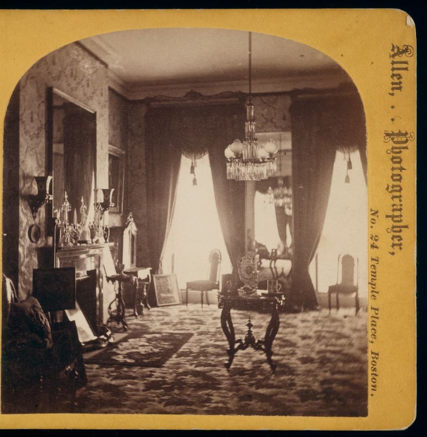 Interior photograph of the back parlor (drawing room) in 5 Park St., Boston, Mass.