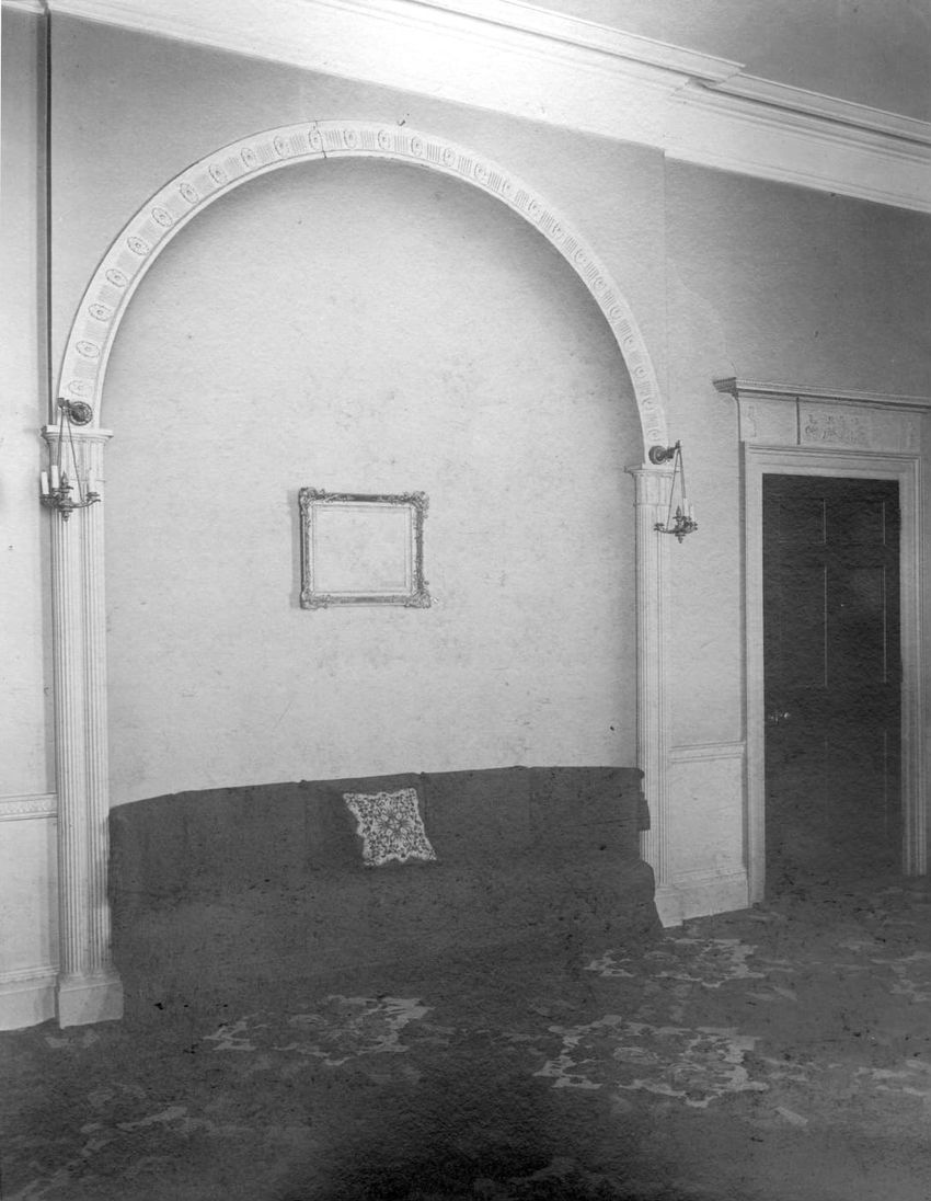 Interior photograph of Miss Anna Palfrey in the Arthur Little House, 2 Raleigh St., Boston, Mass.