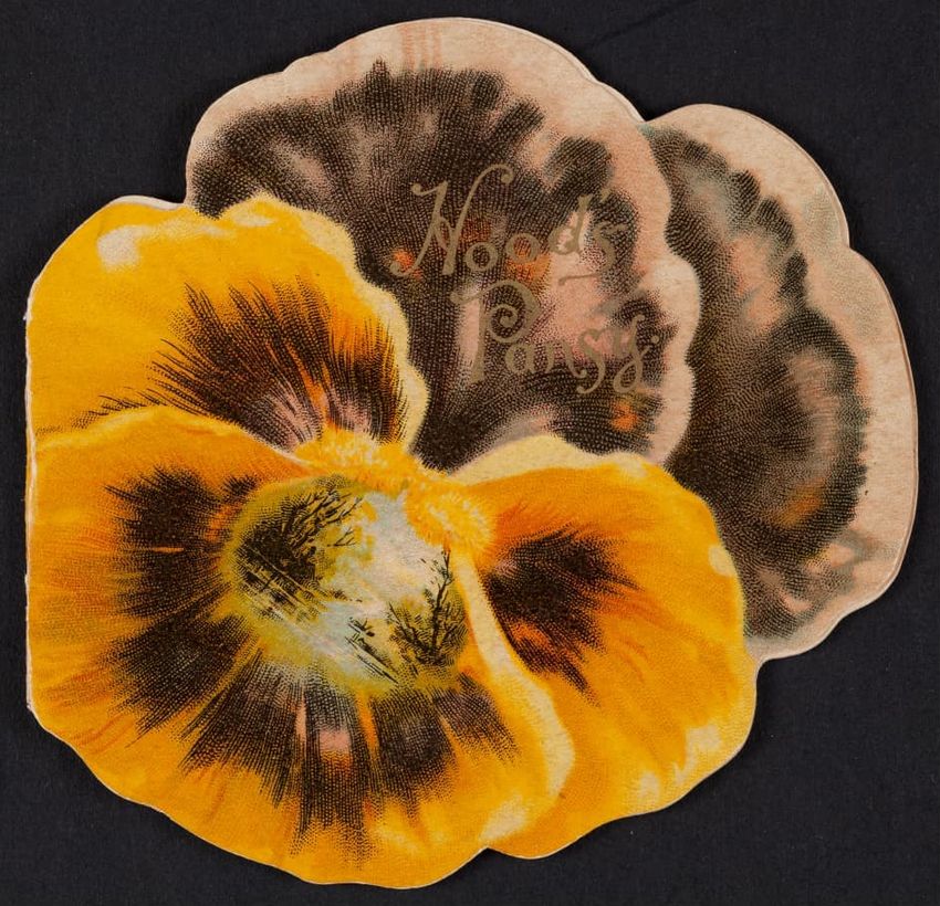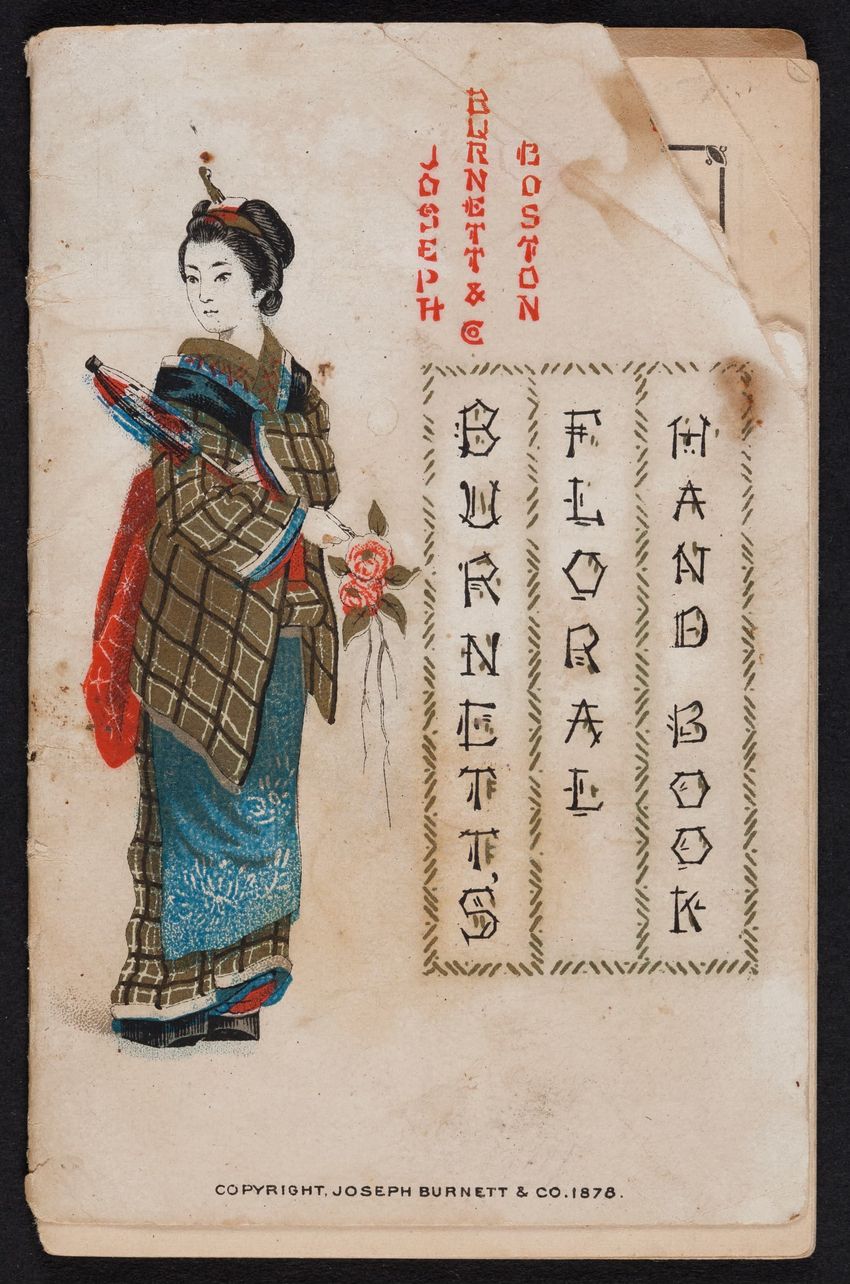 The flower dictionary is interspersed with descriptions of Burnett products such as Burnett's Cocoaine and Burnett's Standard Flavoring Extracts. There is a calendar for 1878 on page 2. Lewis K. Mead, druggist and dealer in Burnett's Standard Preparations, Manchester, New Hampshire is advertised on ...