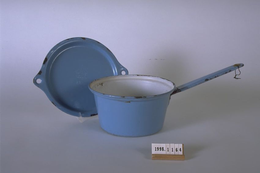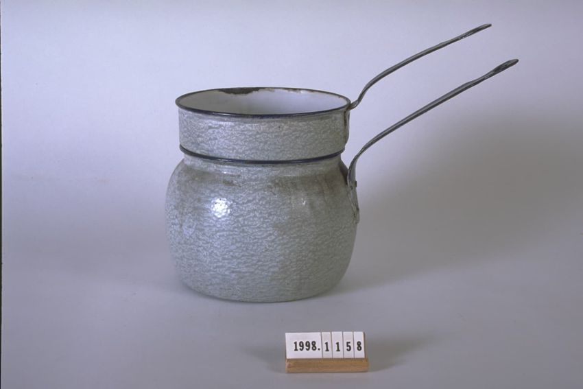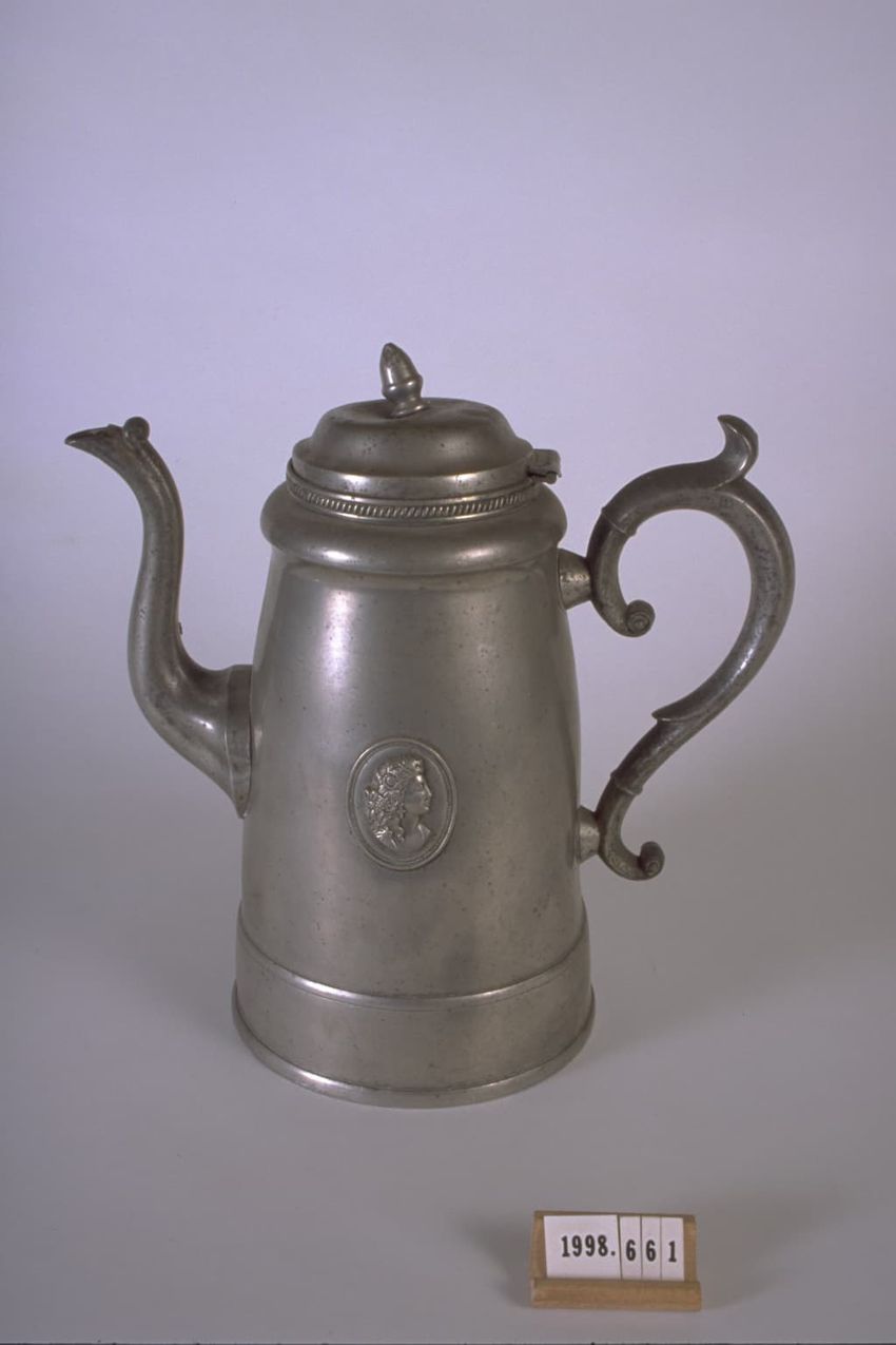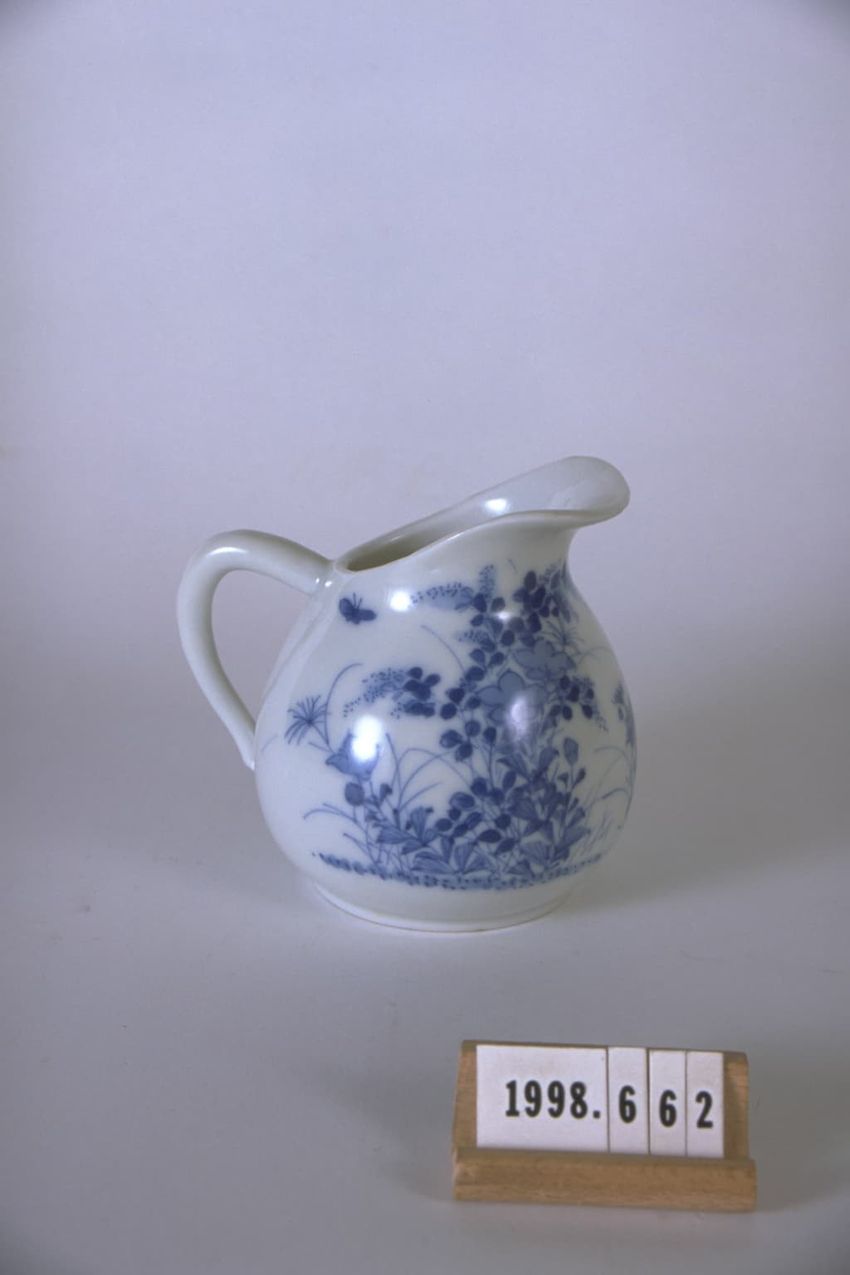 Rocking chair, cottage-style; part of a suite. Painted light green with striping and floral detail in darker greens, white and gray. Carved crest rail with four slender turned spindles connected at bottom to the top rail of the caned lower back. Curving stiles, caned seat, slight cabriole front leg...